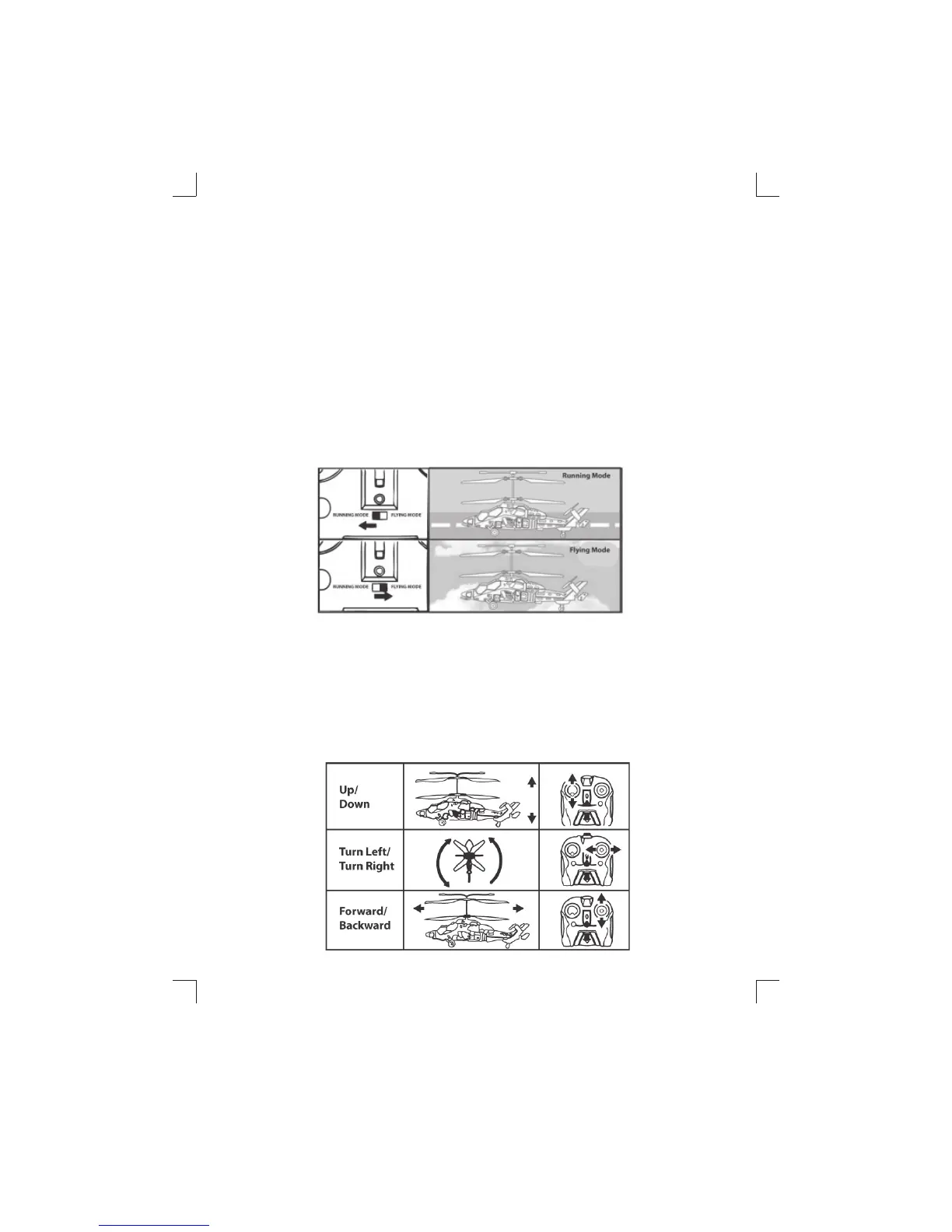 This remote control helicopter has 2 primary functional modes: Running Mode and