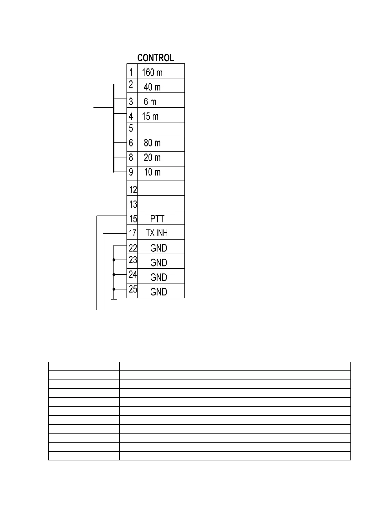 Control connector pinouts: