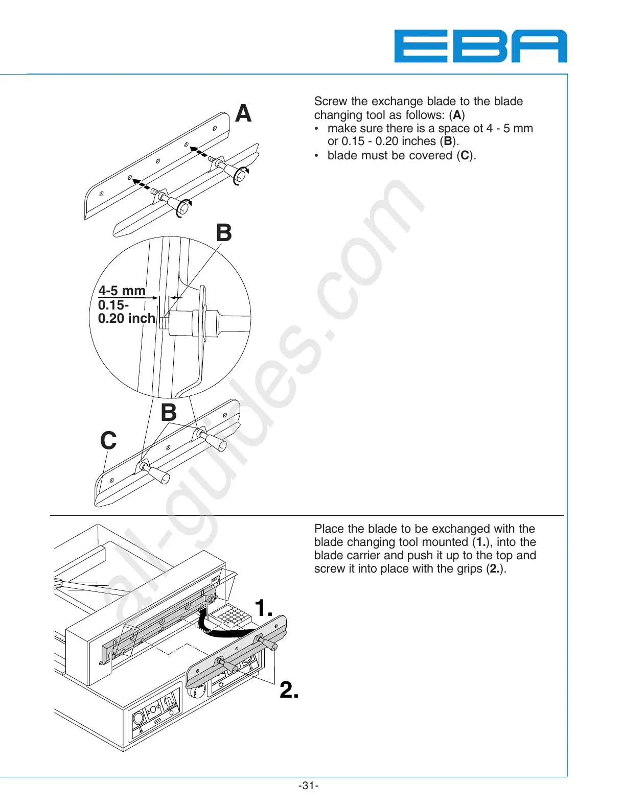 blade changing tool mounted (1.), into the