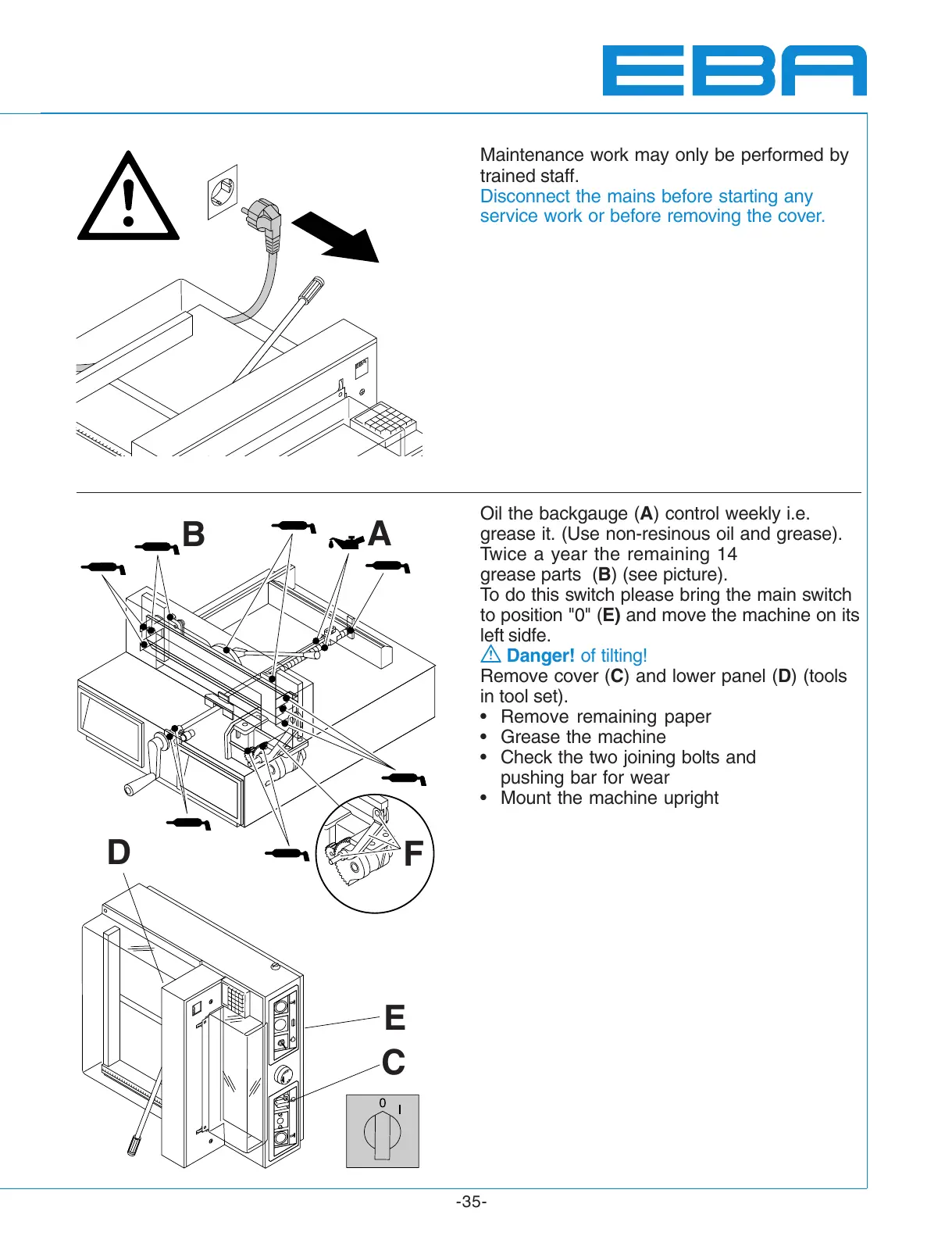 Oil the backgauge (A) control weekly i.e.