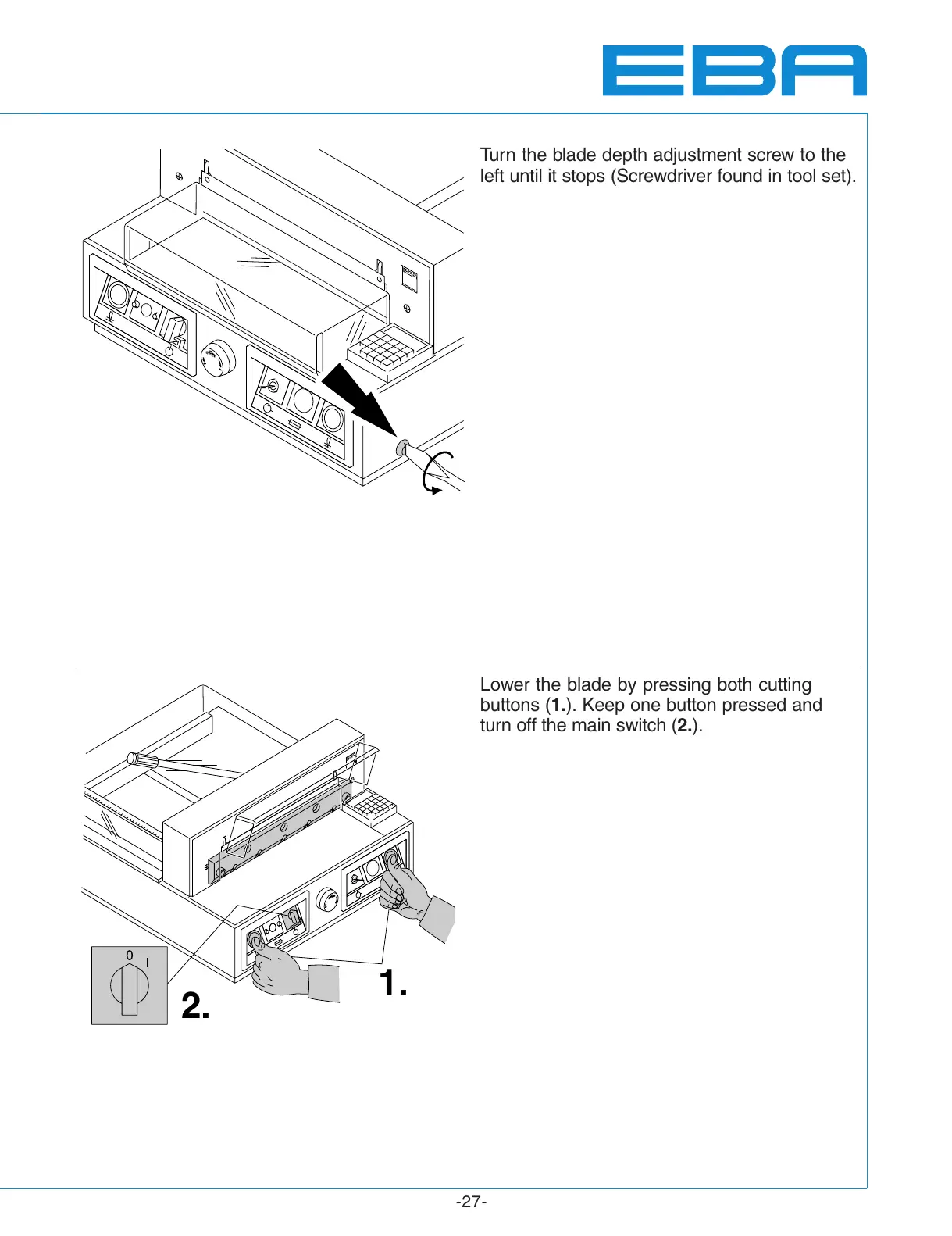 Lower the blade by pressing both cutting
