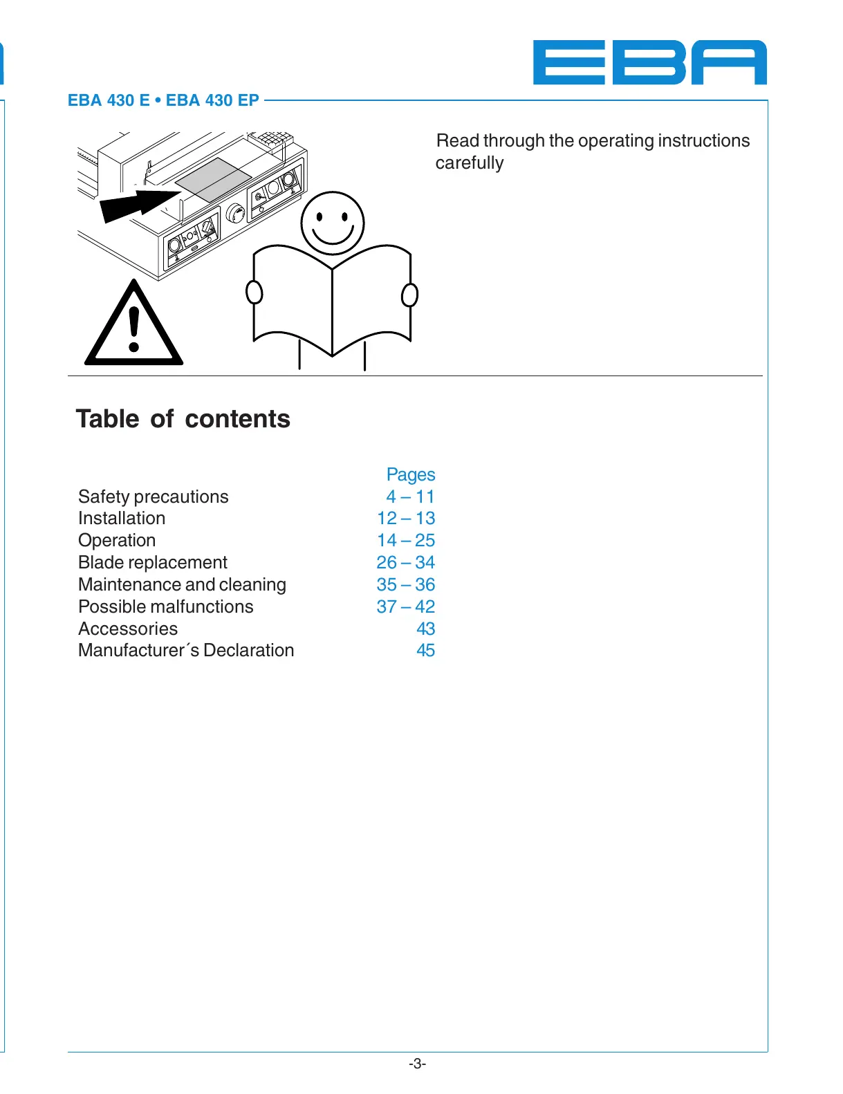 Thank you for choosing a paper cutting machine from EBA. With the purchase of this