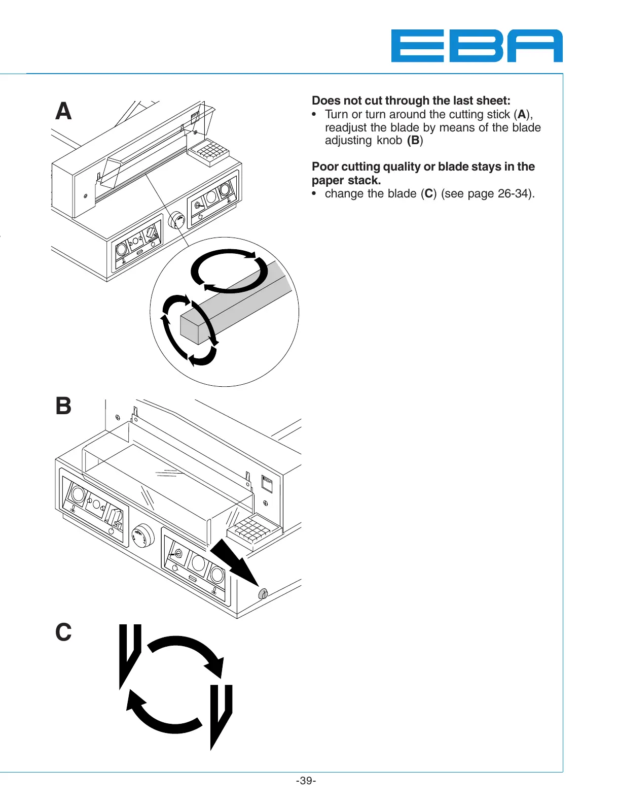 change the blade (C) (see page 26-34).