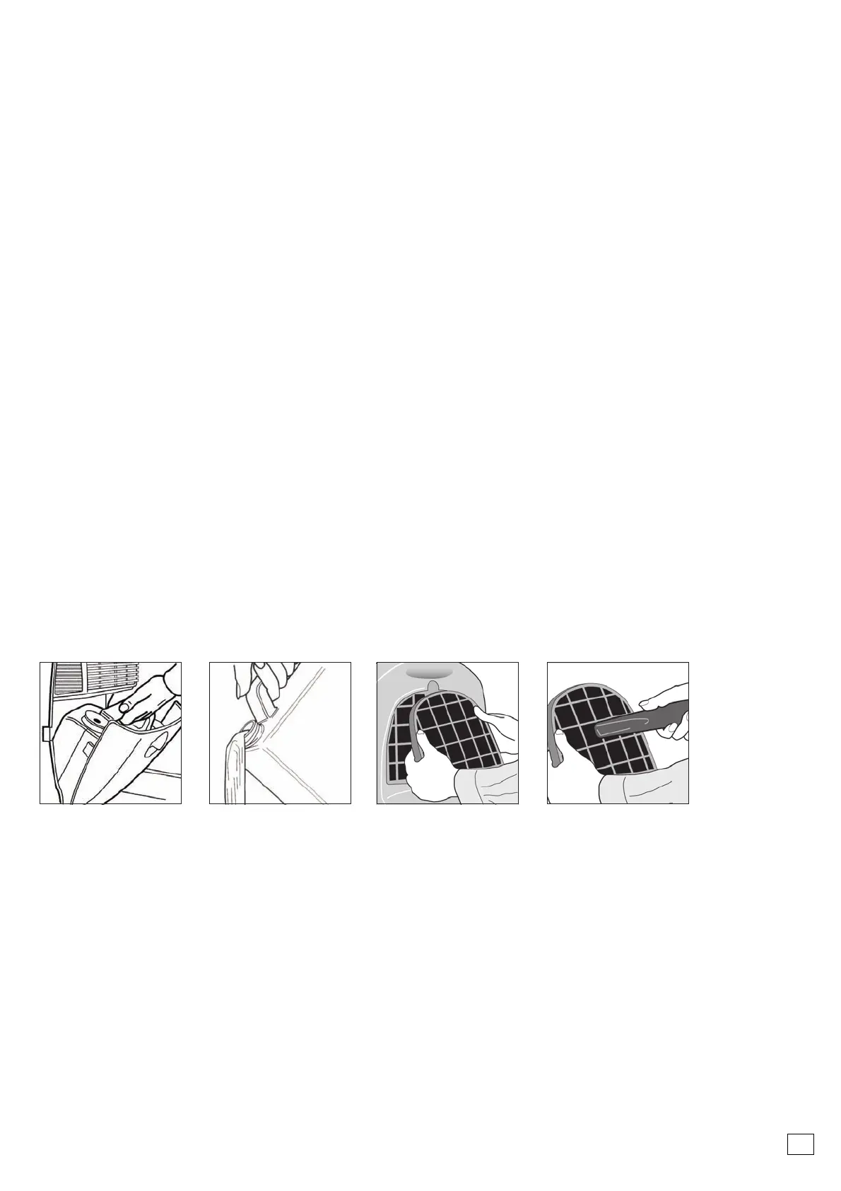 Maak het filter schoon met een stofzuiger op lage zuigkracht (figuur d).