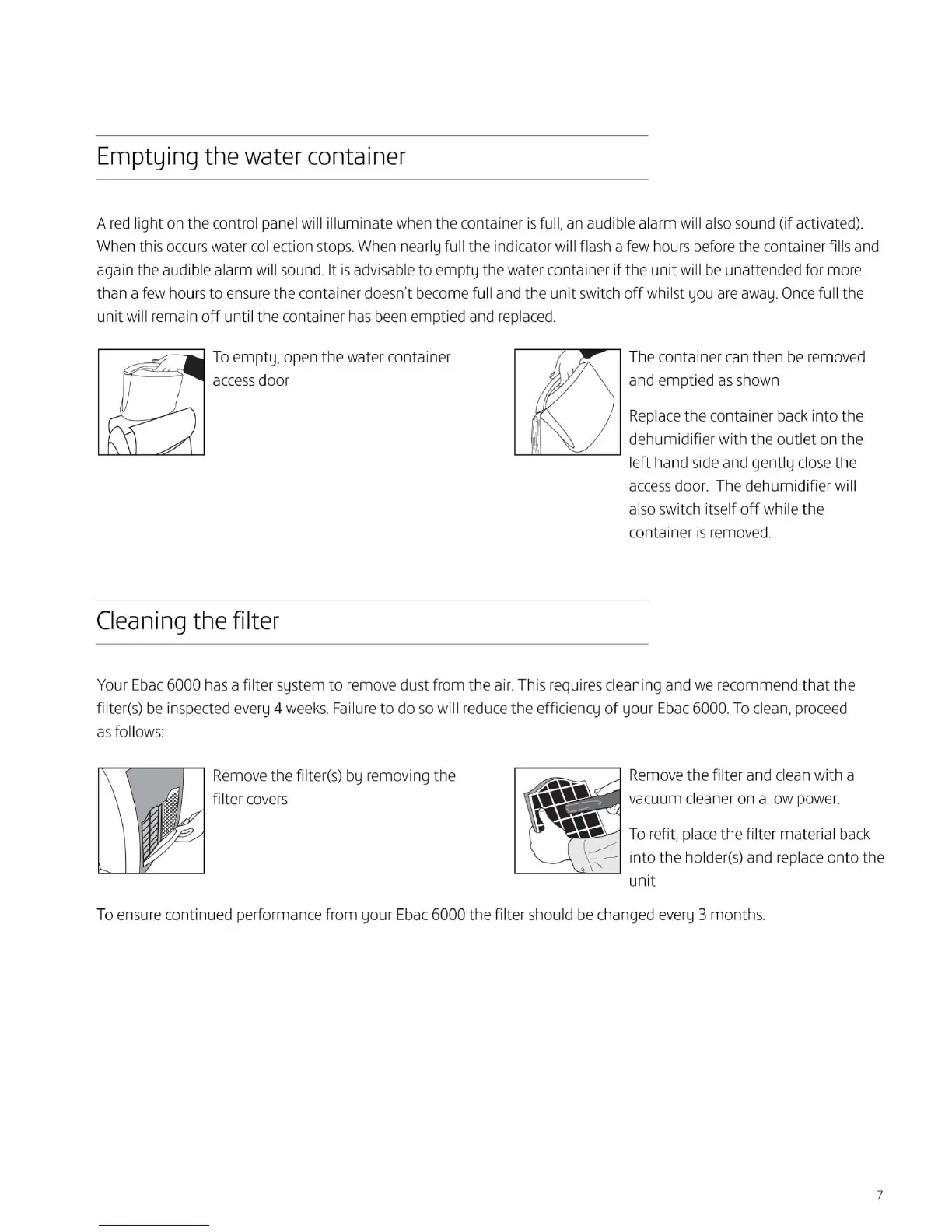Ebac 6000 Series - Maintenance and Operation; Emptying the Water Container; Cleaning the Filter
