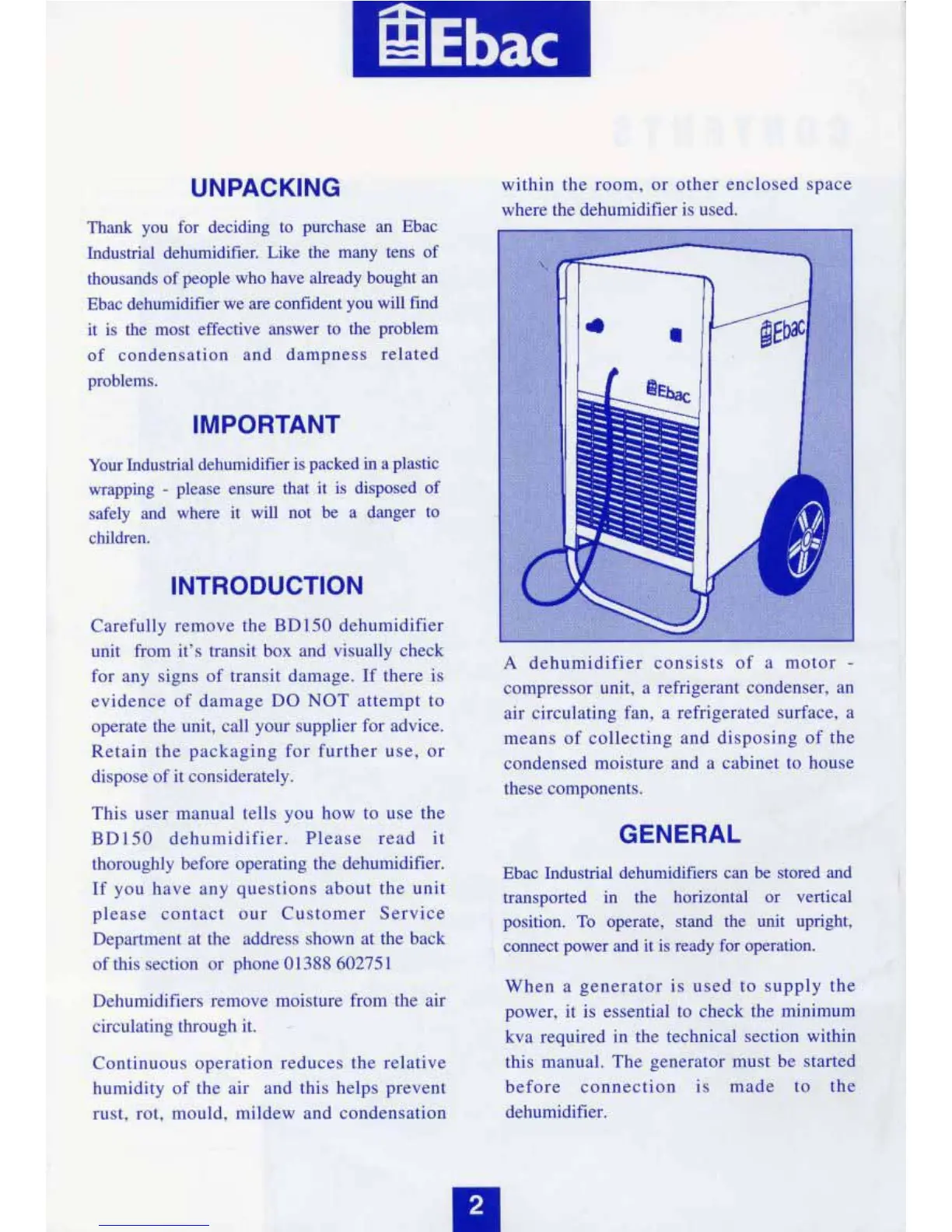 Ebac BD-150 - Ebac BD-150 Dehumidifier Specifications