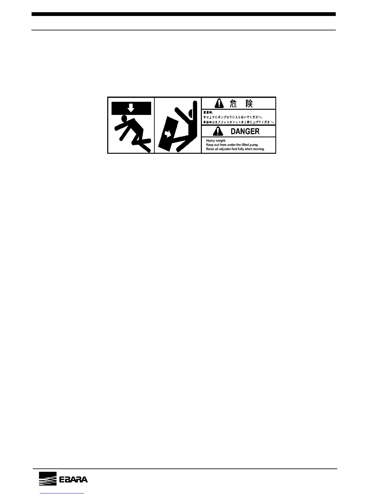 Heavy weight may cause severe injury or death due to overturning or falling pump.