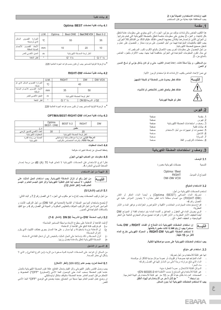 EBARA BEST ONE - Starting; Version with Float; Version without Float; RIGHT - DW Pumps