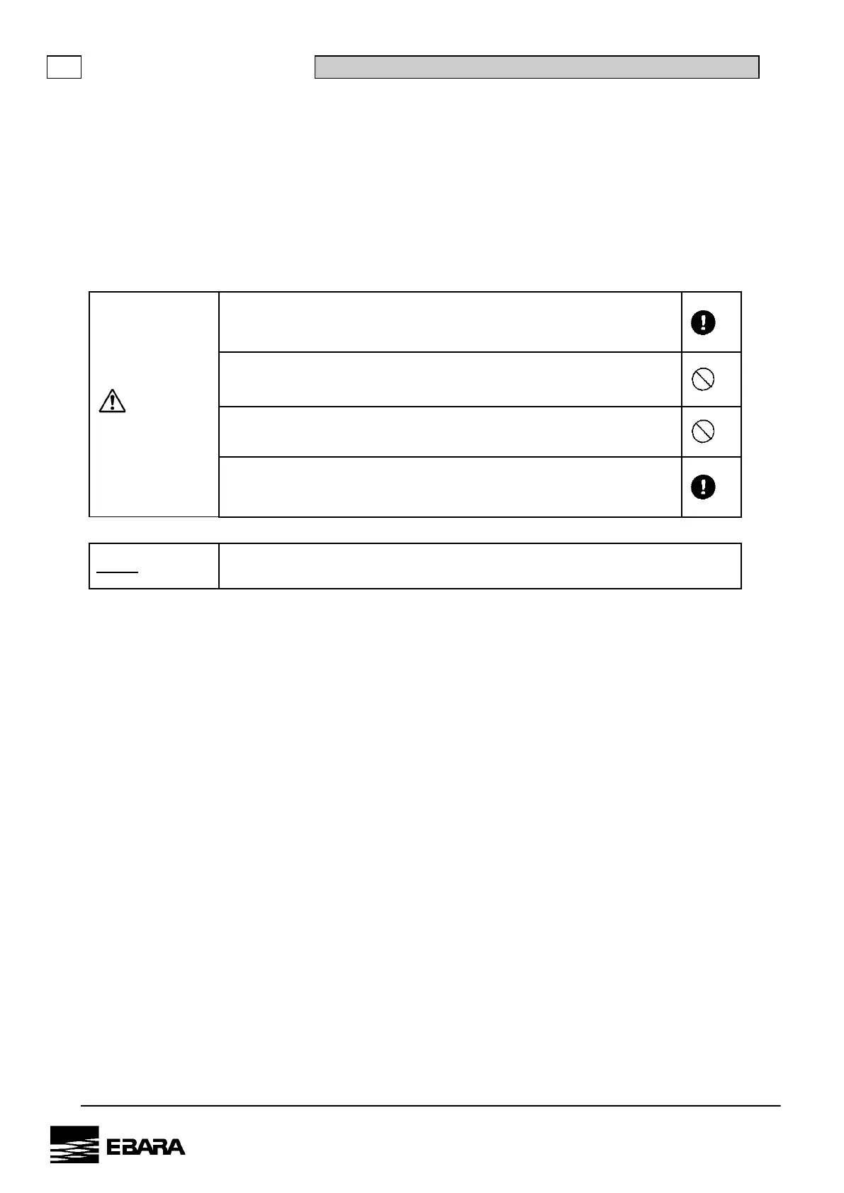 1) On transporting and installing the pump, never apply tension to the cables. Those works shall be