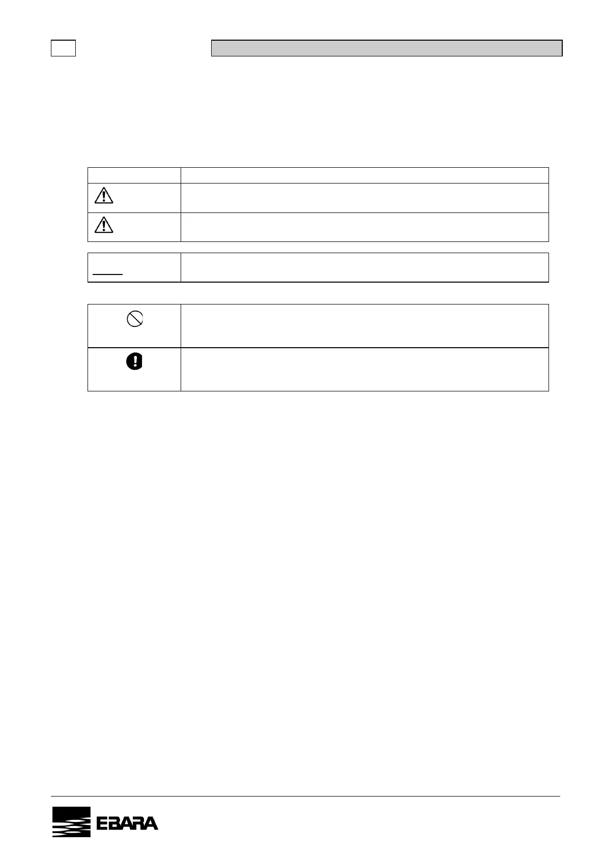 The precautions given here are to assure safe and correct operation of the pump and to prevent