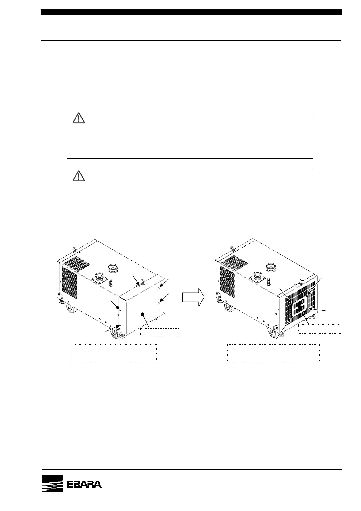 (1) Stop the pump and remove the closing panel (rear side) on the pump.(See Fig. 6.1)