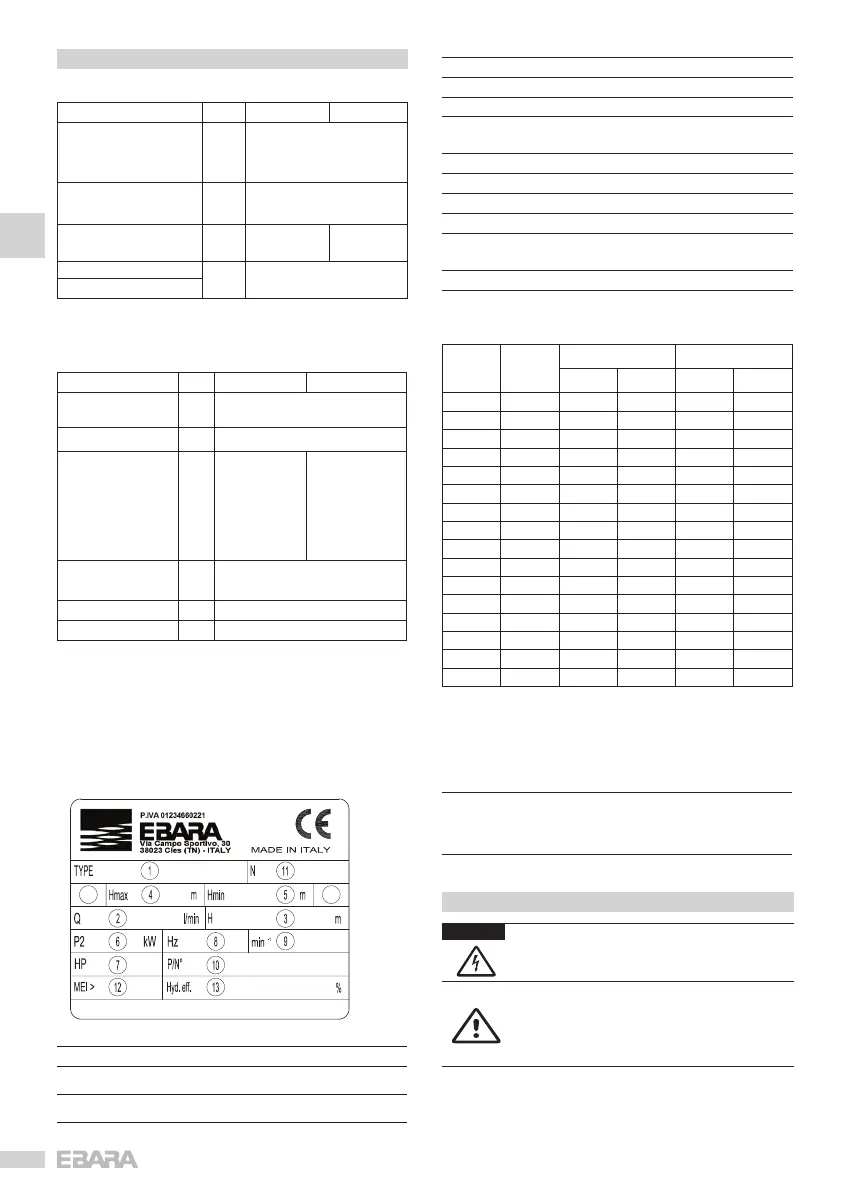 12) “MEI” Index of the pump’s quality in relation to its efciency