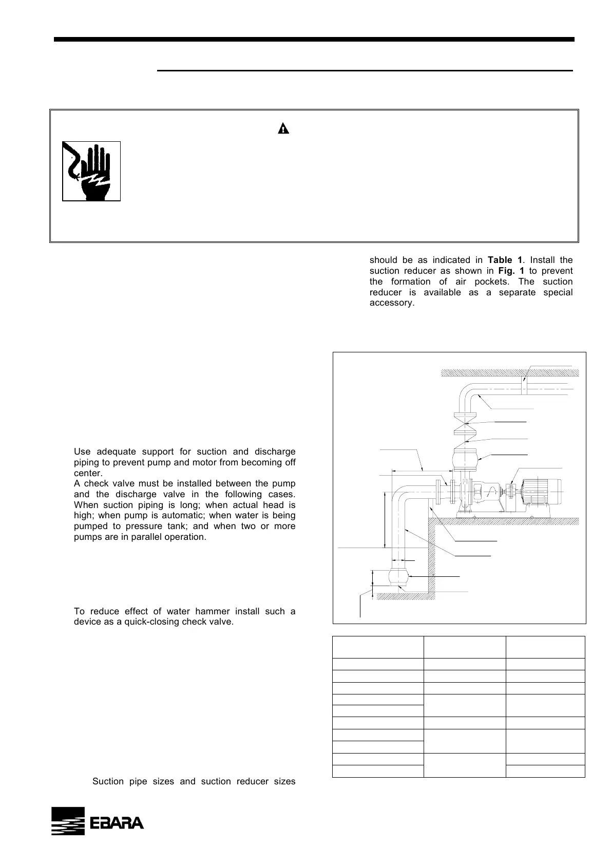 (1) Use adequate support for suction and discharge