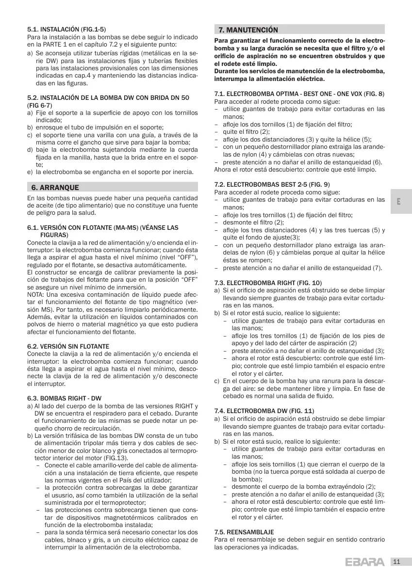 7.4. ELECTROBOMBA DW (FIG. 11)