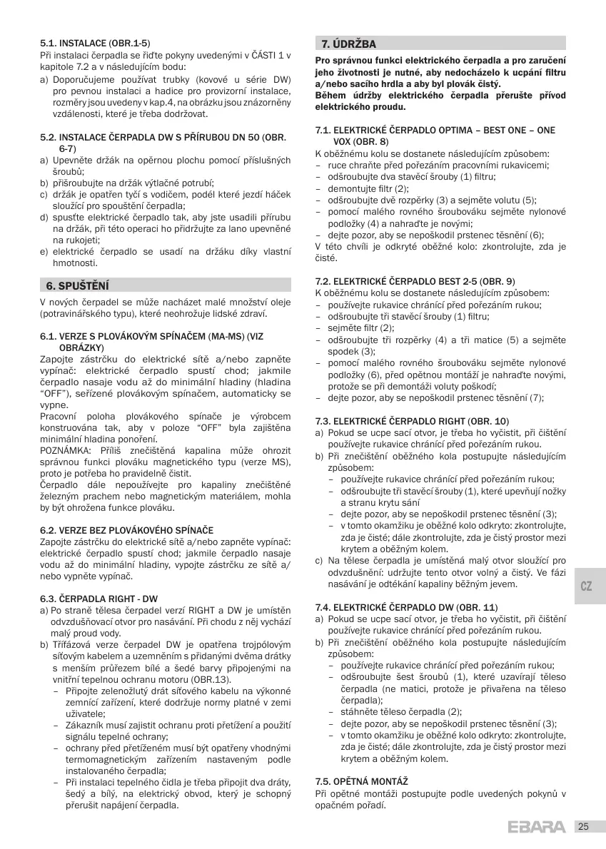 7.4. ELEKTRICKÉ ČERPADLO DW (OBR. 11)