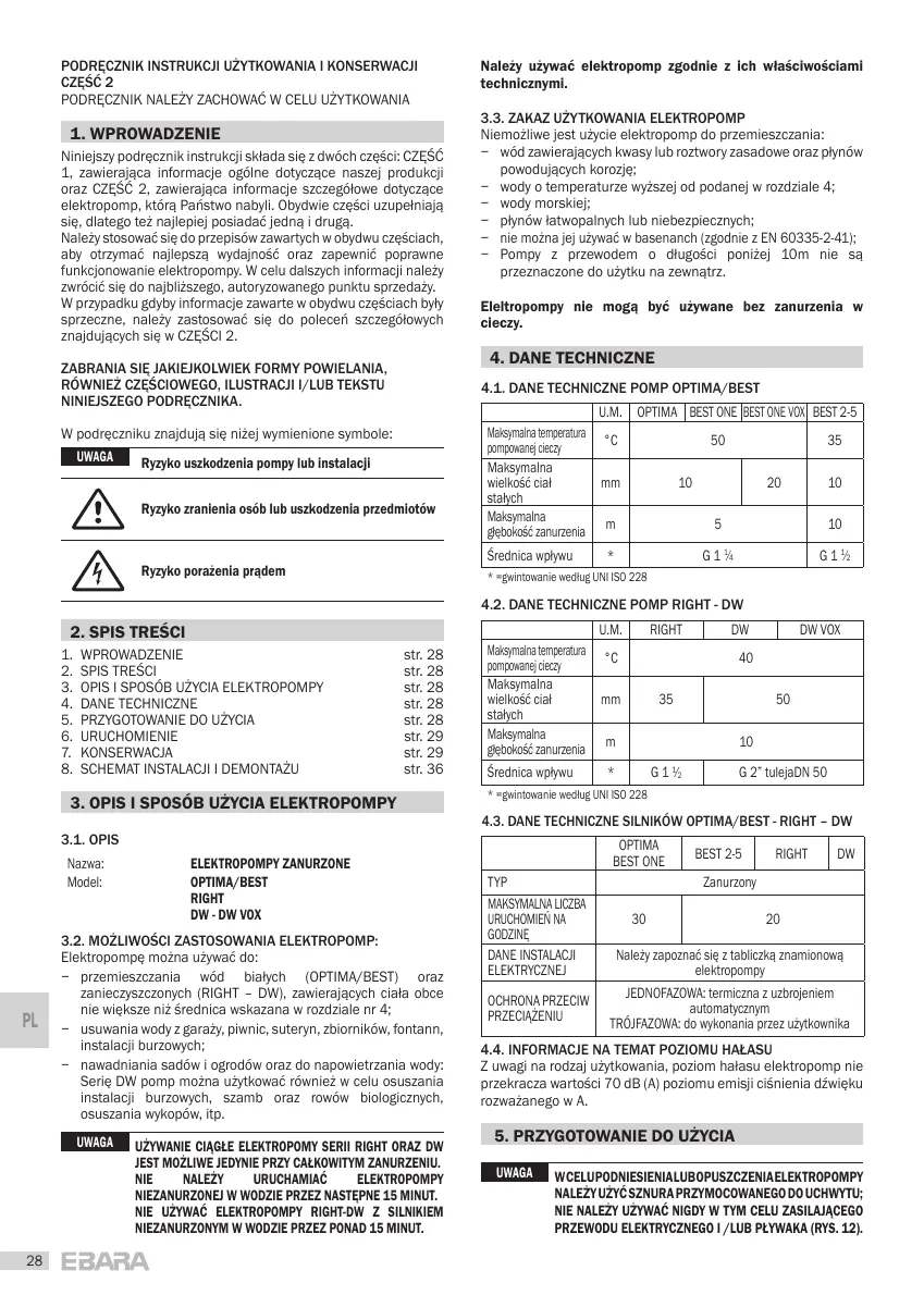 3. OPIS I SPOSÓB UұYCIA ELEKTROPOMPY str. 28