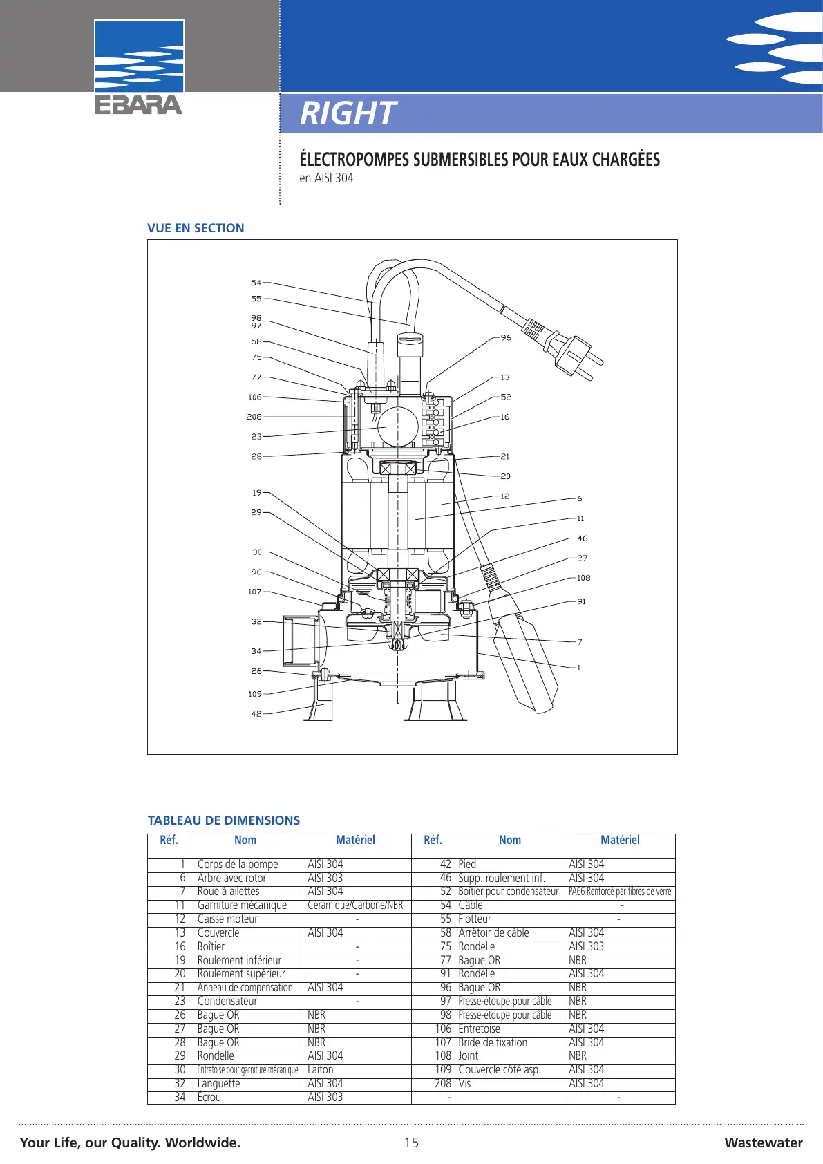 ÉLECTROPOMPES SUBMERSIBLES POUR EAUX CHARGÉES