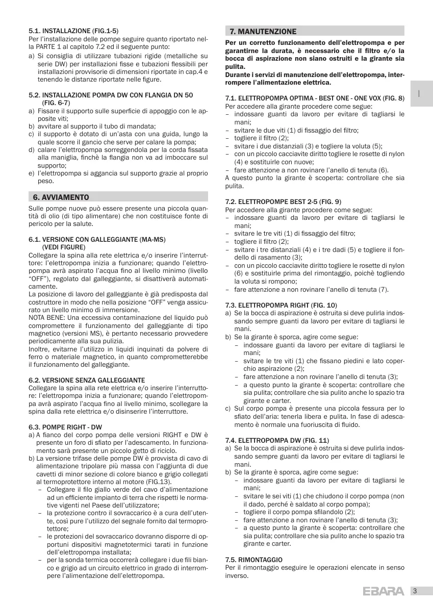 7.2. ELETTROPOMPE BEST 2-5 (FIG. 9)