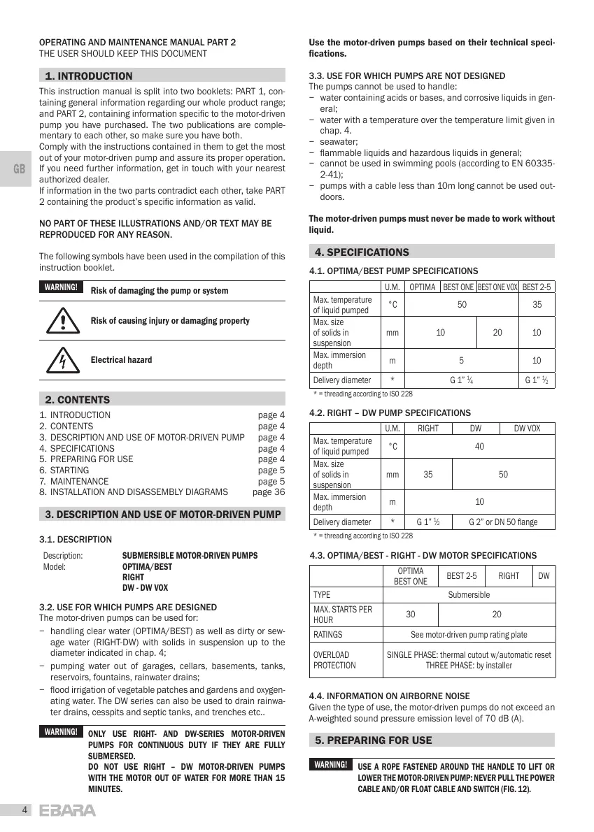 3. DESCRIPTION AND USE OF MOTOR-DRIVEN PUMP page 4