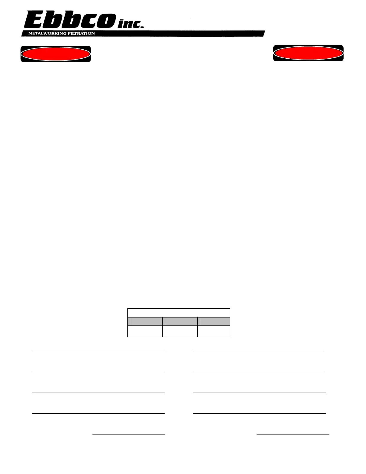 I have read and understand the Ebbco Service Manual. I agree that proper system maintenance and filter change out will