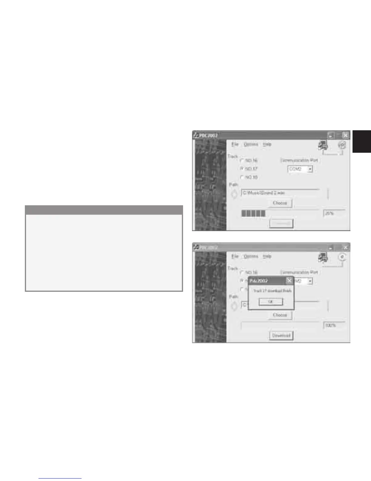 will be loaded!” appears in the download programme