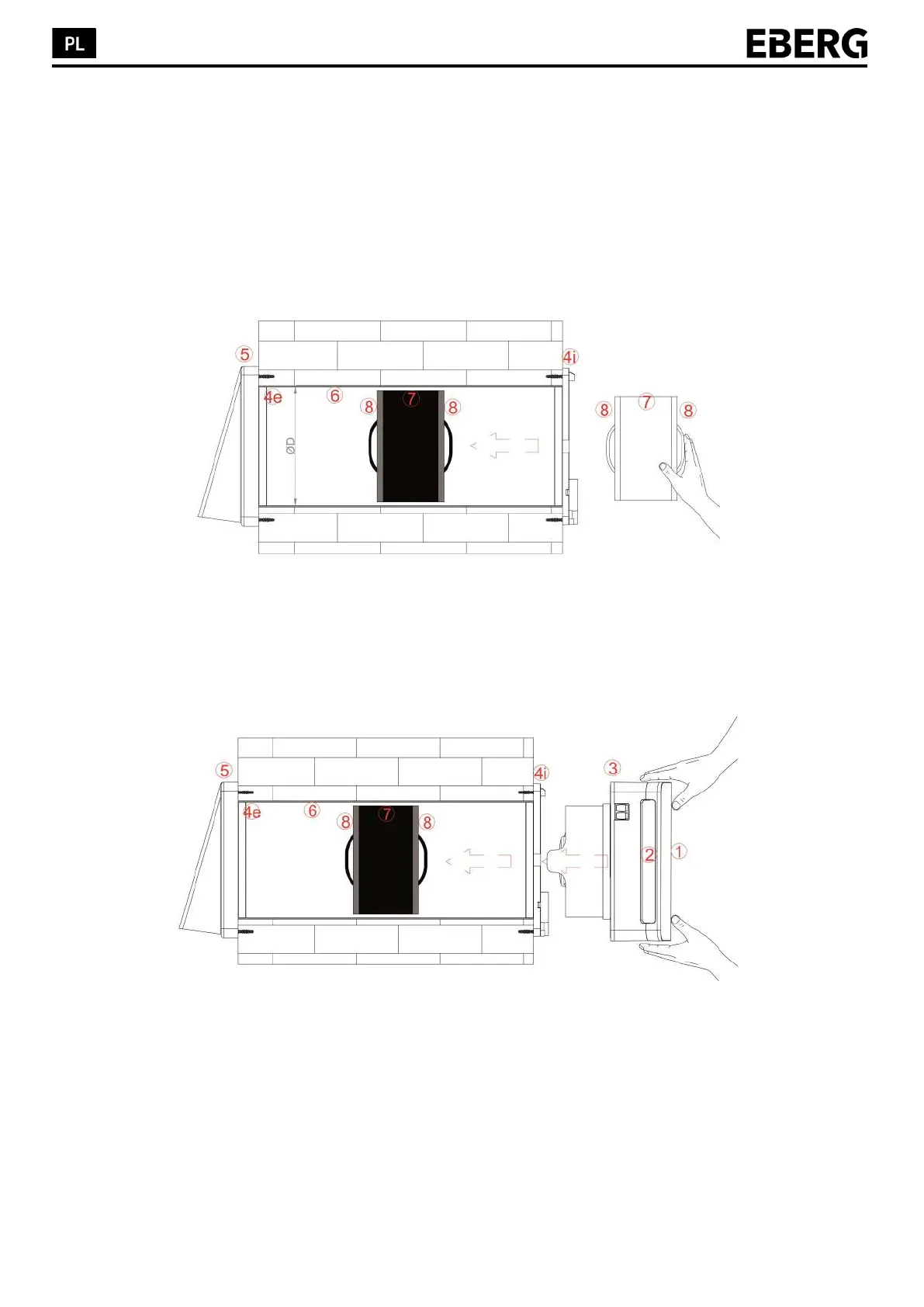 na obudowie. Wymiennik ceramiczny (7) wraz z filtrem wlotowym i wylotowym (8) należy umieścić wewnątrz