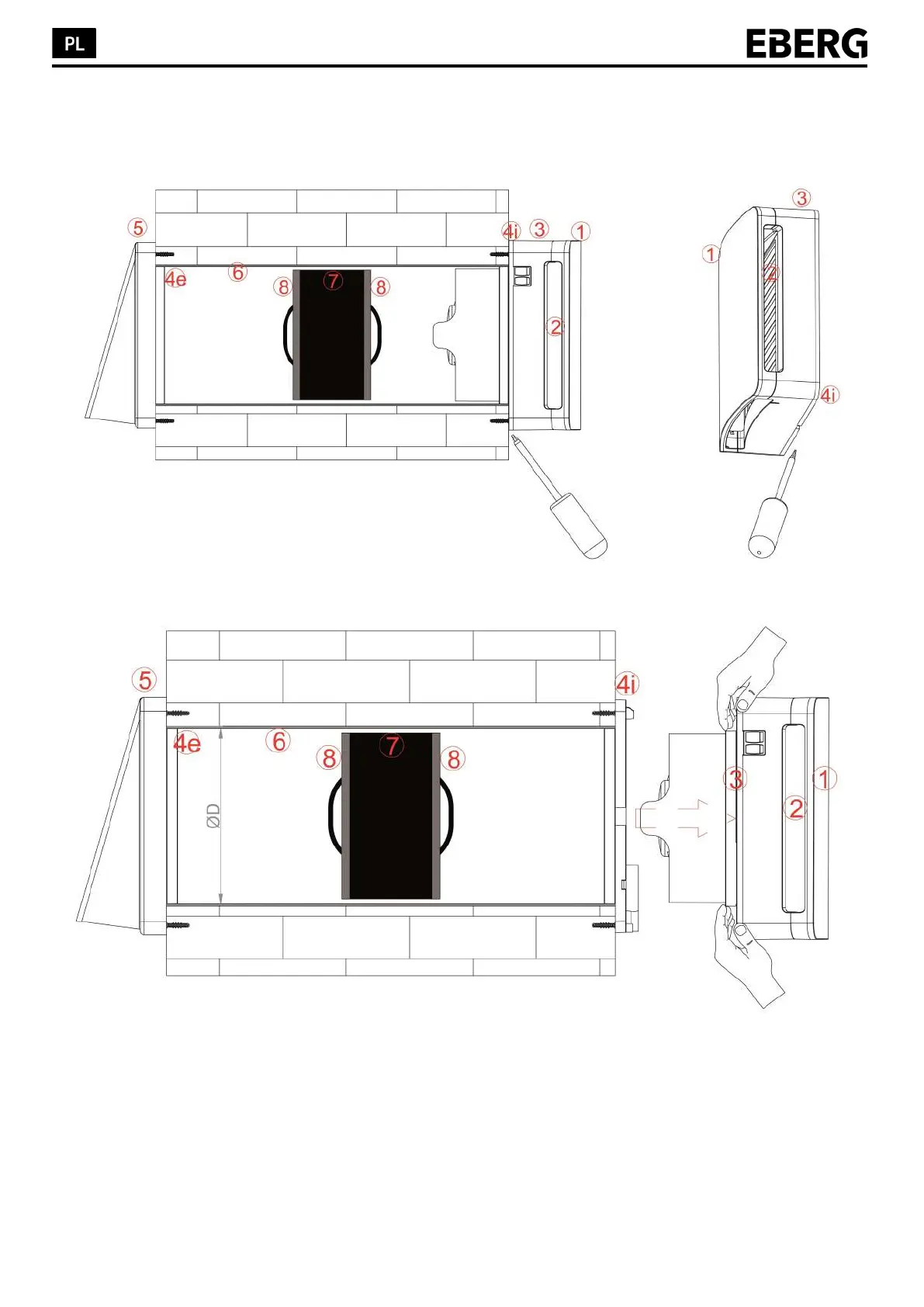 Gdy urządzenie odłączy się od płyty montażowe (4i), wysuń je rękami, tak jak pokazano poniżej:
