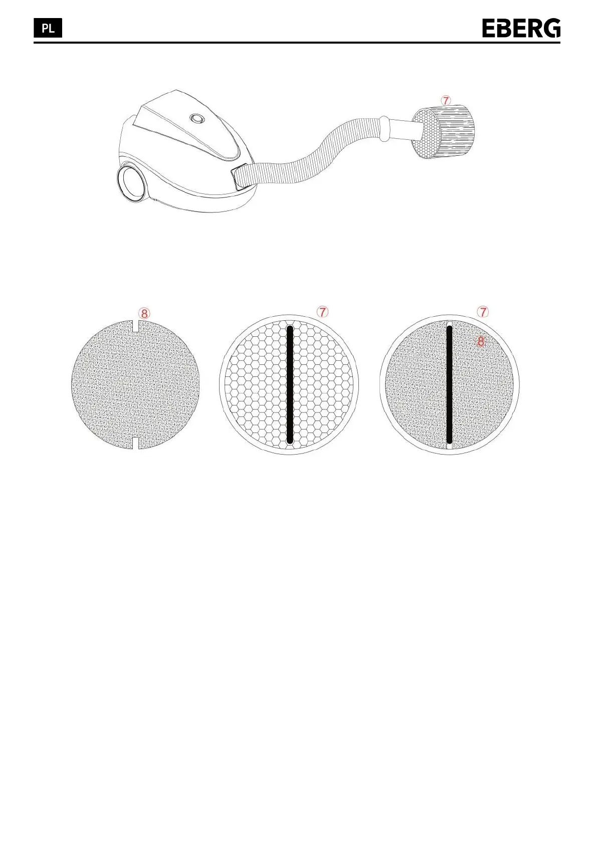 Podczas czyszczenia lub wymiany filtrów (8) usuń osady brudu z filtra ceramicznego przy pomocy odkurzacza. W