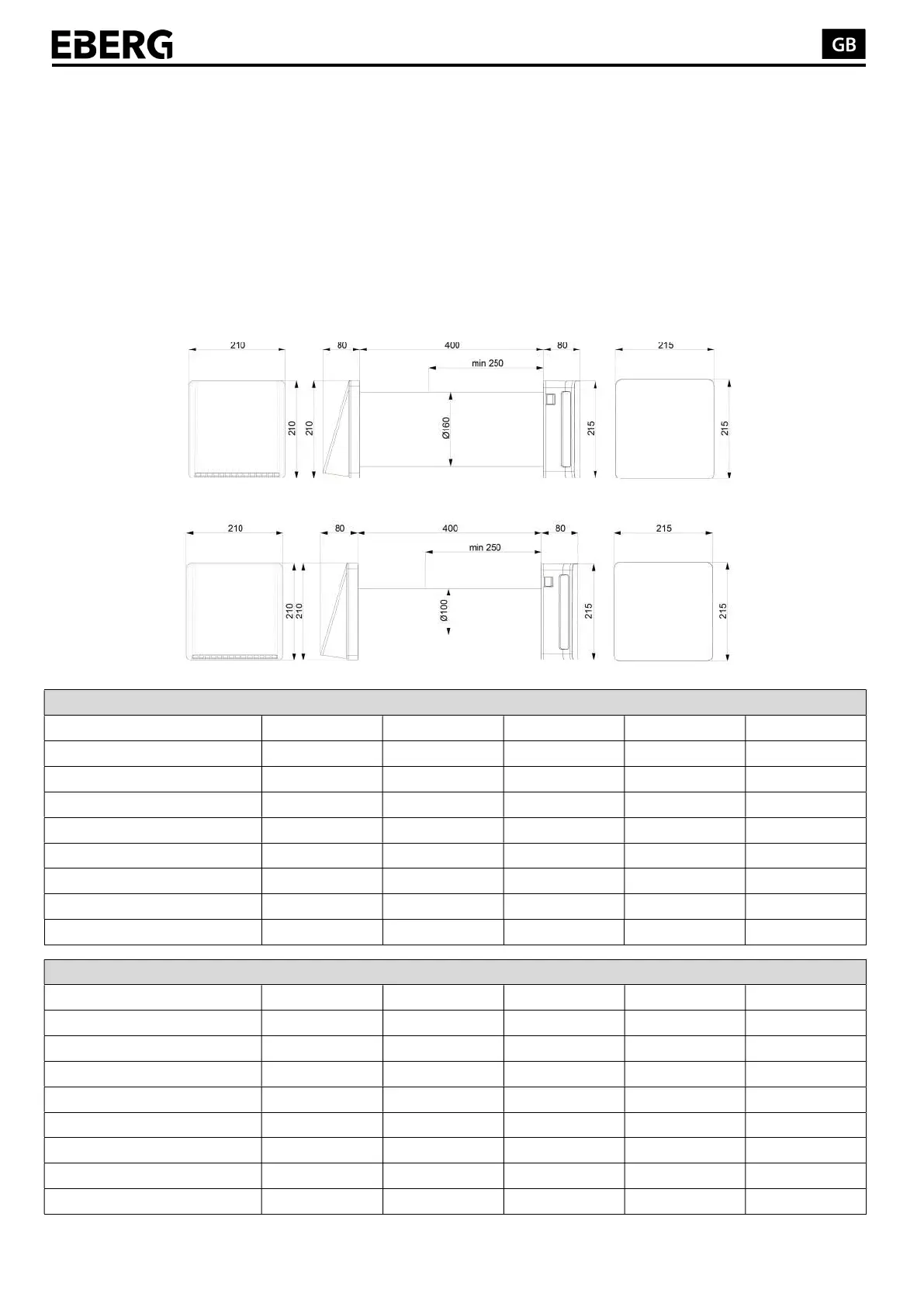 Flow rate Ø160 [m³/h] 30 60 X X X