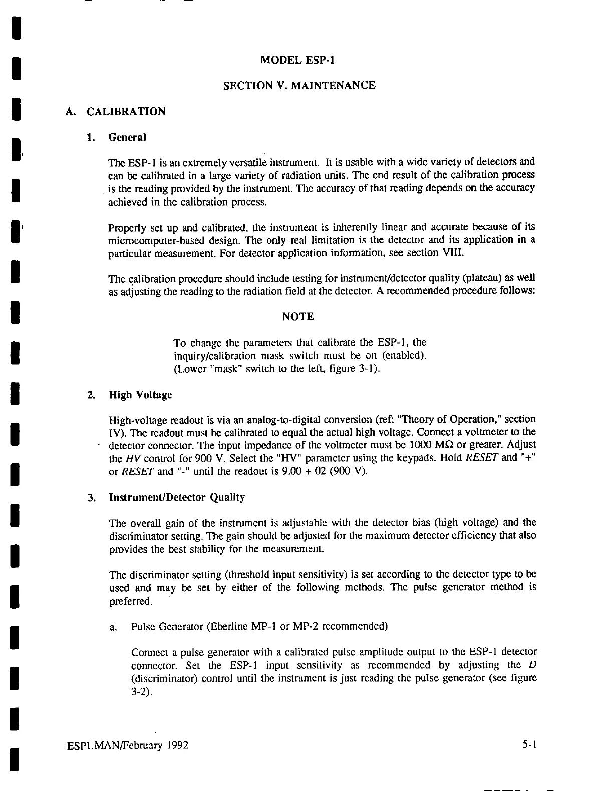 Eberline ESP-1 - SECTION V. MAINTENANCE; CALIBRATION
