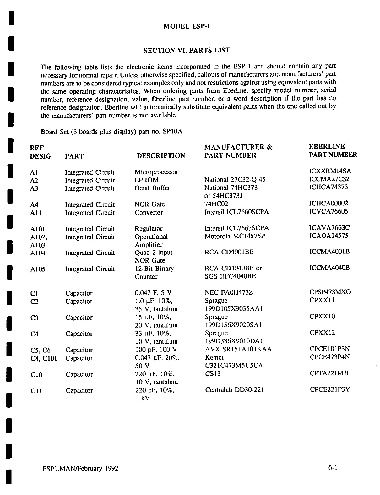 Eberline ESP-1 - SECTION VI. PARTS LIST