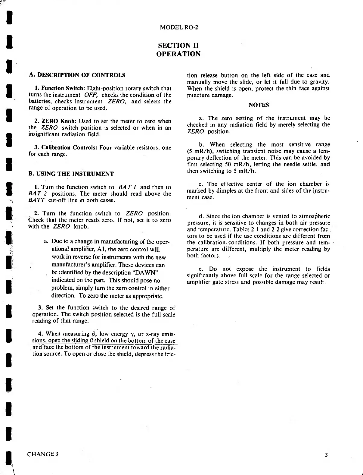 Eberline RO-2 - Instrument Operation; Description of Controls; Using the Instrument and Important Notes