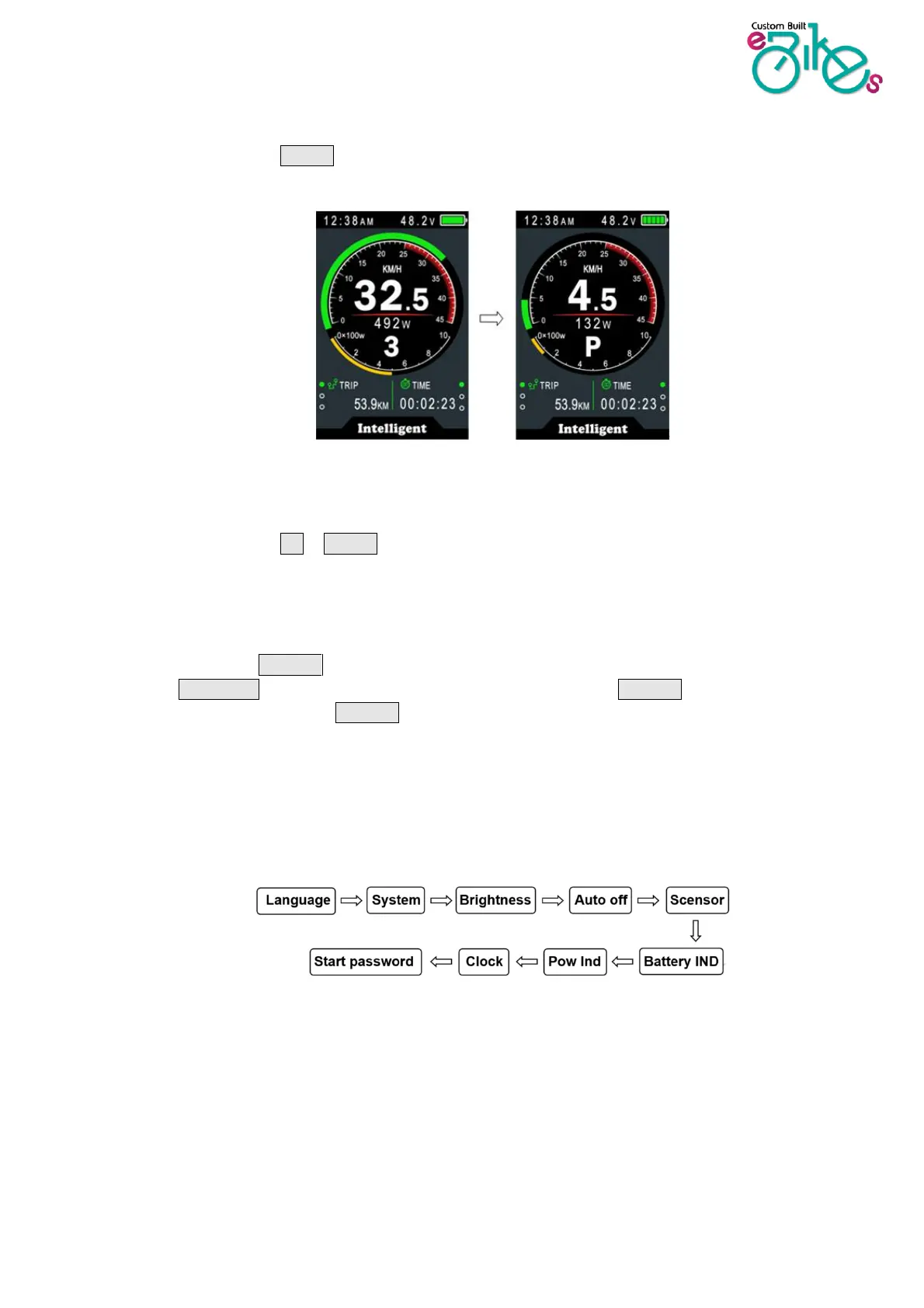 * For safety reasons, you can’t enter the settings menu when riding