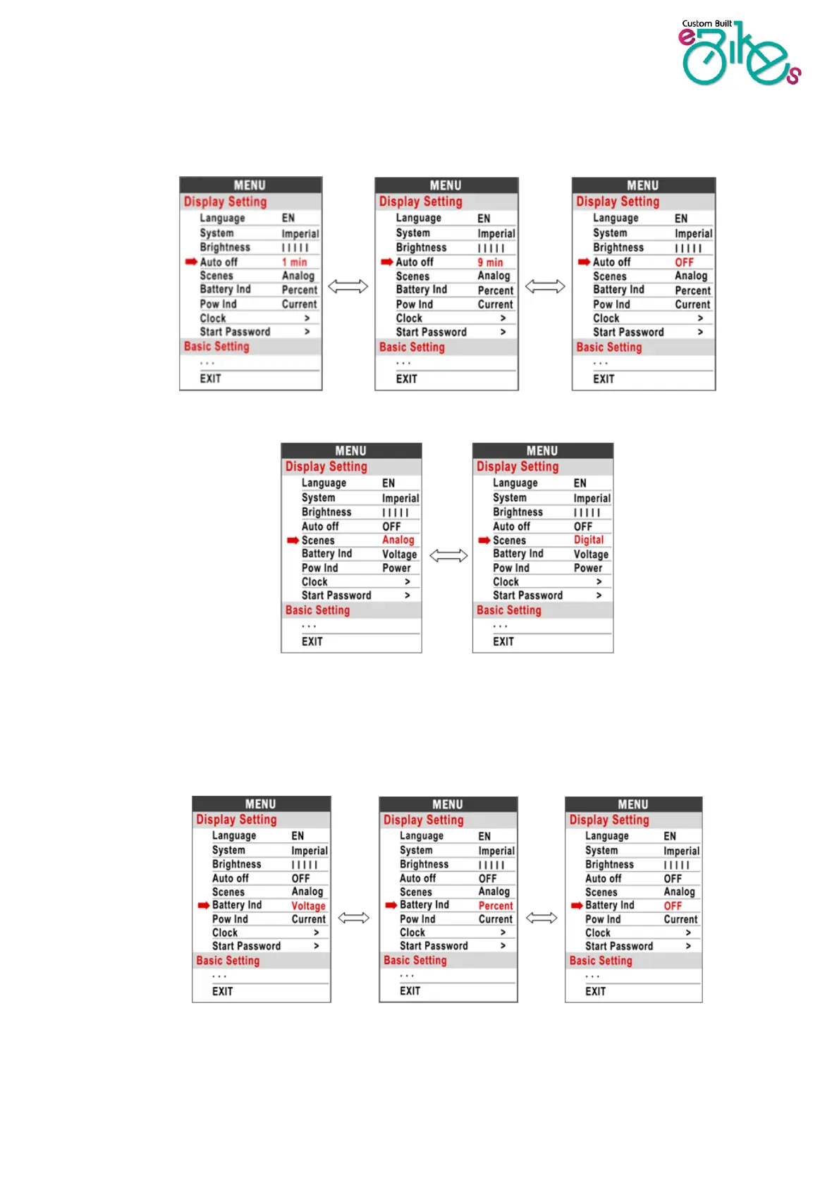8.6 Battery Ind : Press UP/DOWN button to change the battery indicator, Voltage / Percentage /