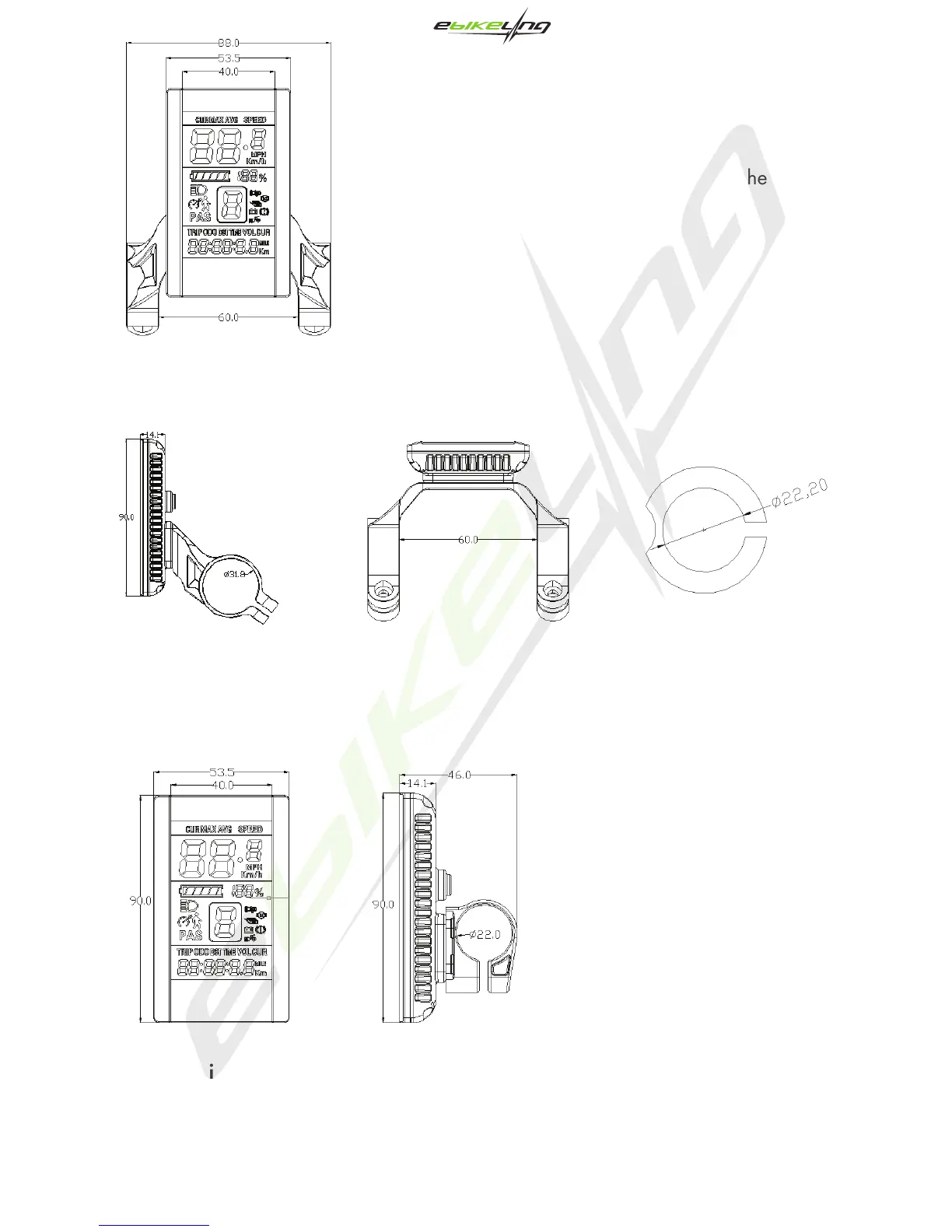 EBIKELING LCD S830 - Exterior Parameters and Dimensions; Casing and Display Materials; Single Supporter and Converter Ring; Operating Voltage and Connections