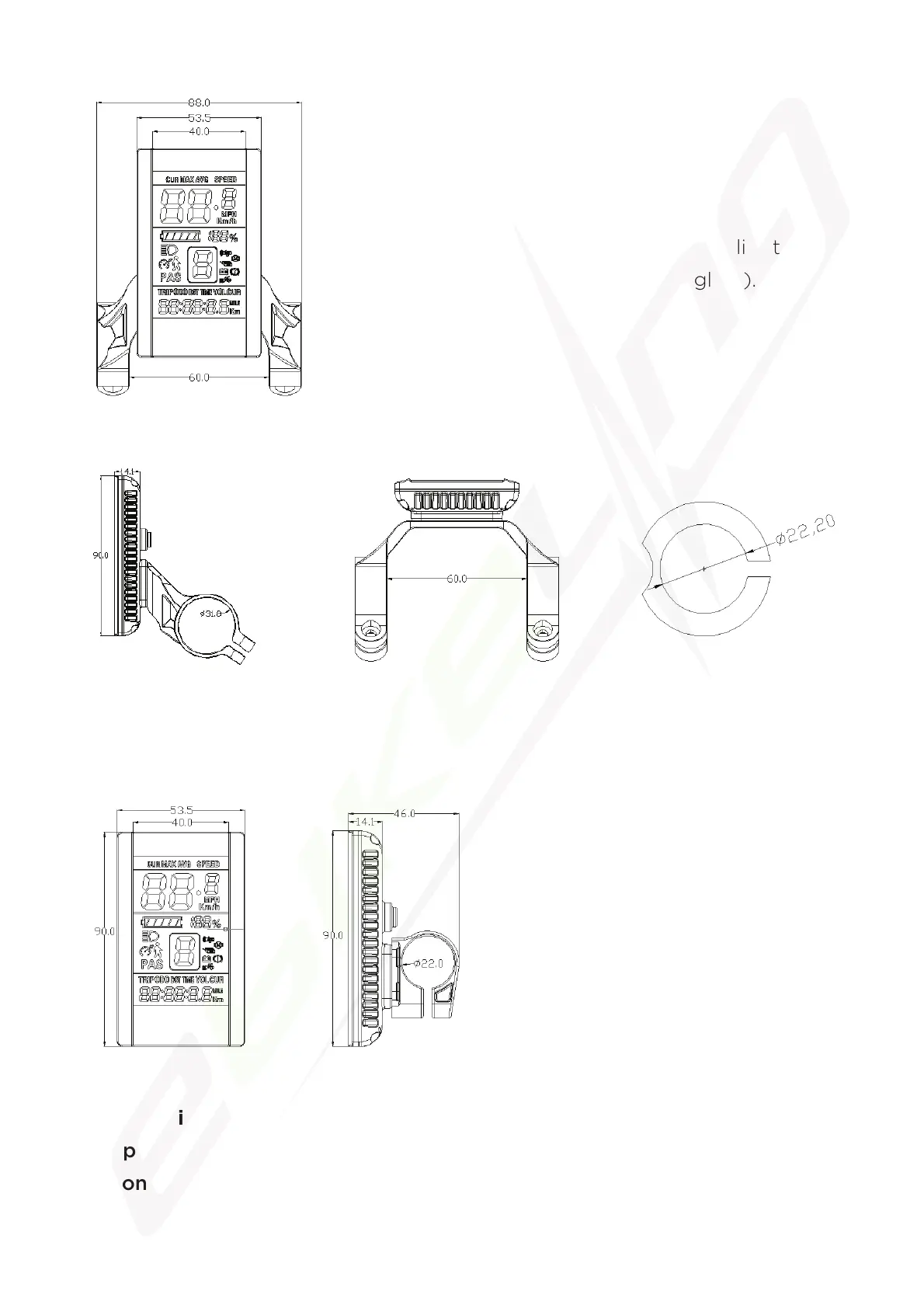 EBIKELING S830 - Exterior Parameters; Casing and Display Materials; Single Supporter Dimensions; Converter Ring Diameter