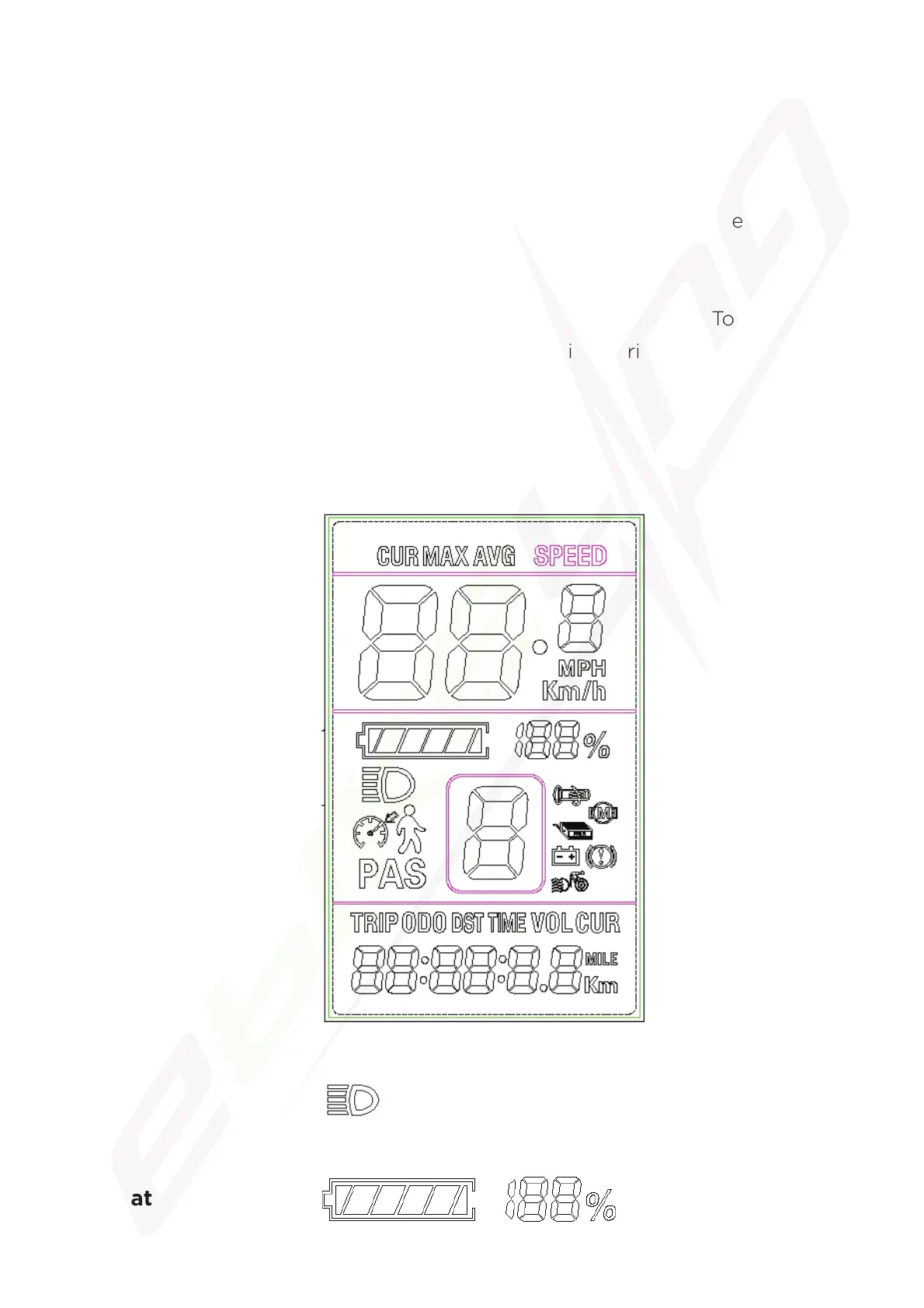 Speed Display, Motor Power Ratio Display, Battery Level Display,