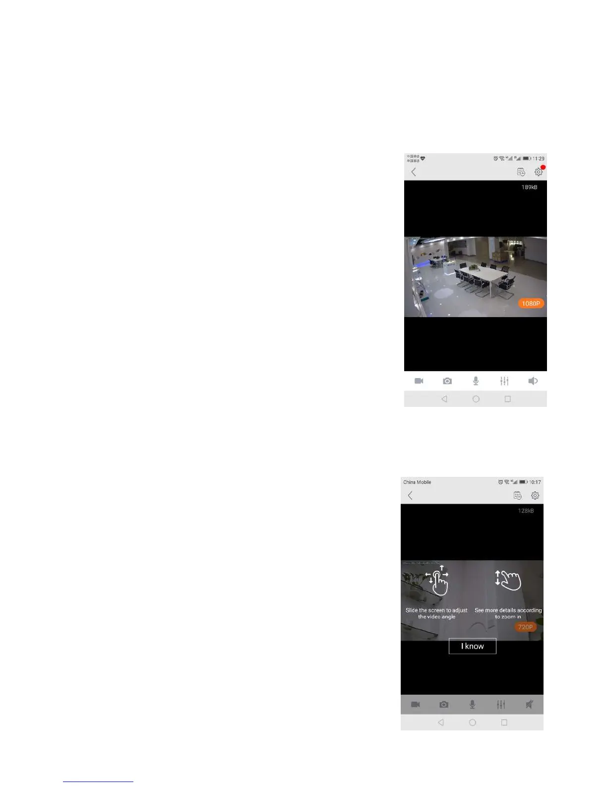 microphone, speaker, and Image setting buttons.The navigation bar