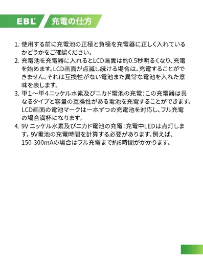 「ERROR」取り扱いが誤た場合に充電器は「ERROR