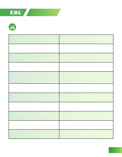 EBL EBL-999 - Test Data; Product Specifications