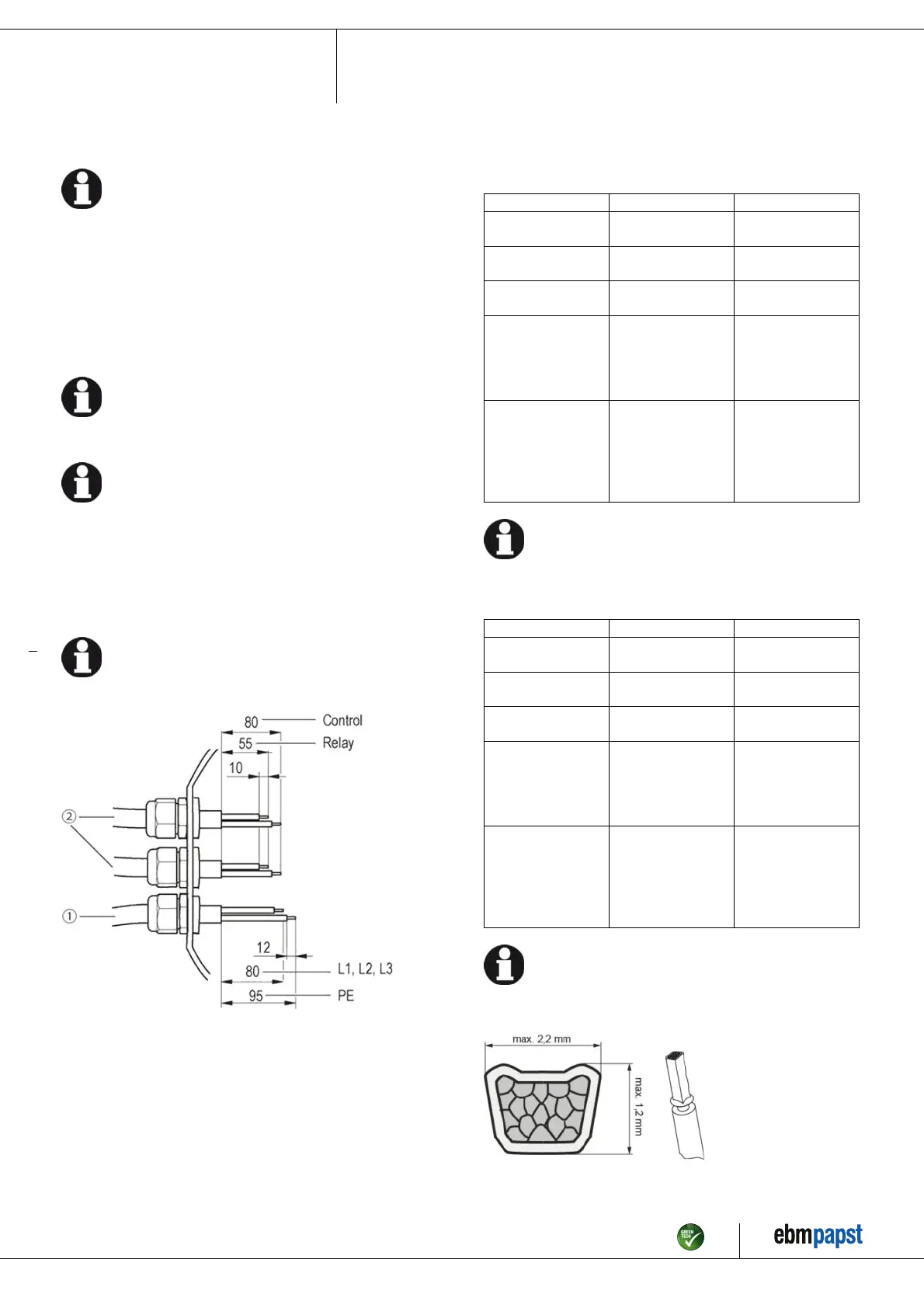 For flexible control and relay cables, from a cable cross-section