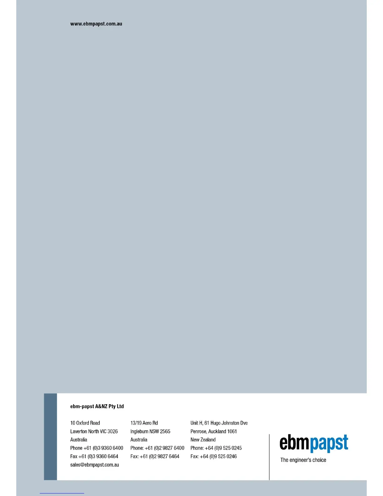 ebm-papst A&NZ Pty Ltd 10 Oxford Road · Laverton North VIC 3026 · Phone +61 (03) 9360 6400 · Fax +61 (03) 9360 6464