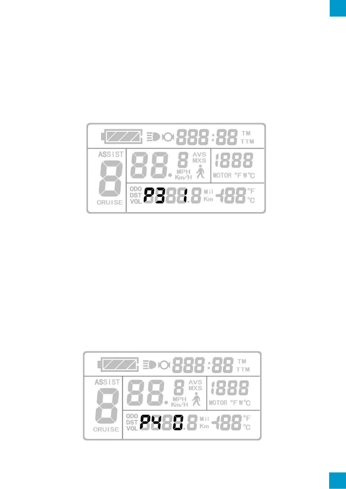 P3 Parameters affect the pedal assist system (PAS) control setting. When the value is set
