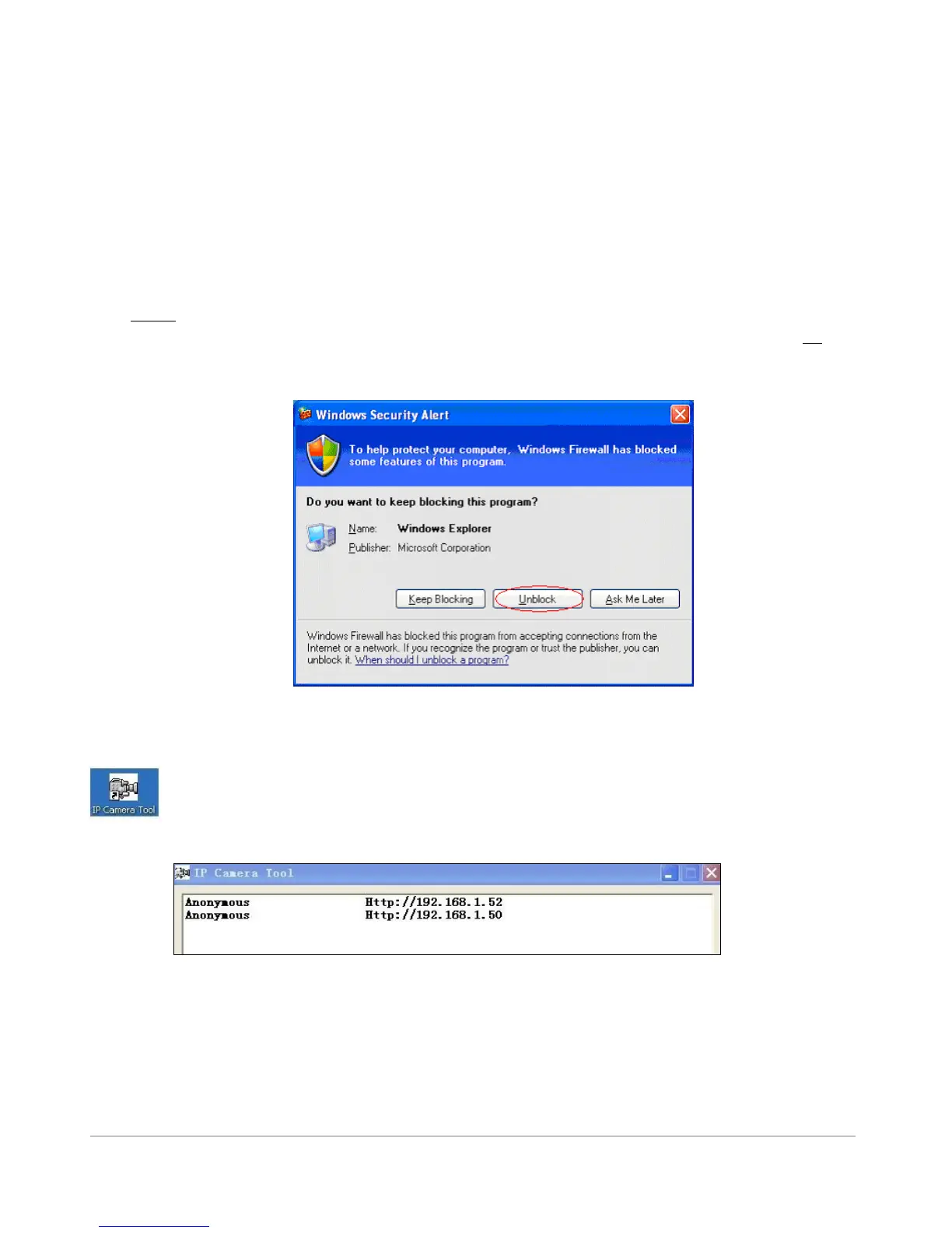 Caution: On the first run of the program “IP Camera Tool” you might get a Windows Security Alert Popup. It will ask you