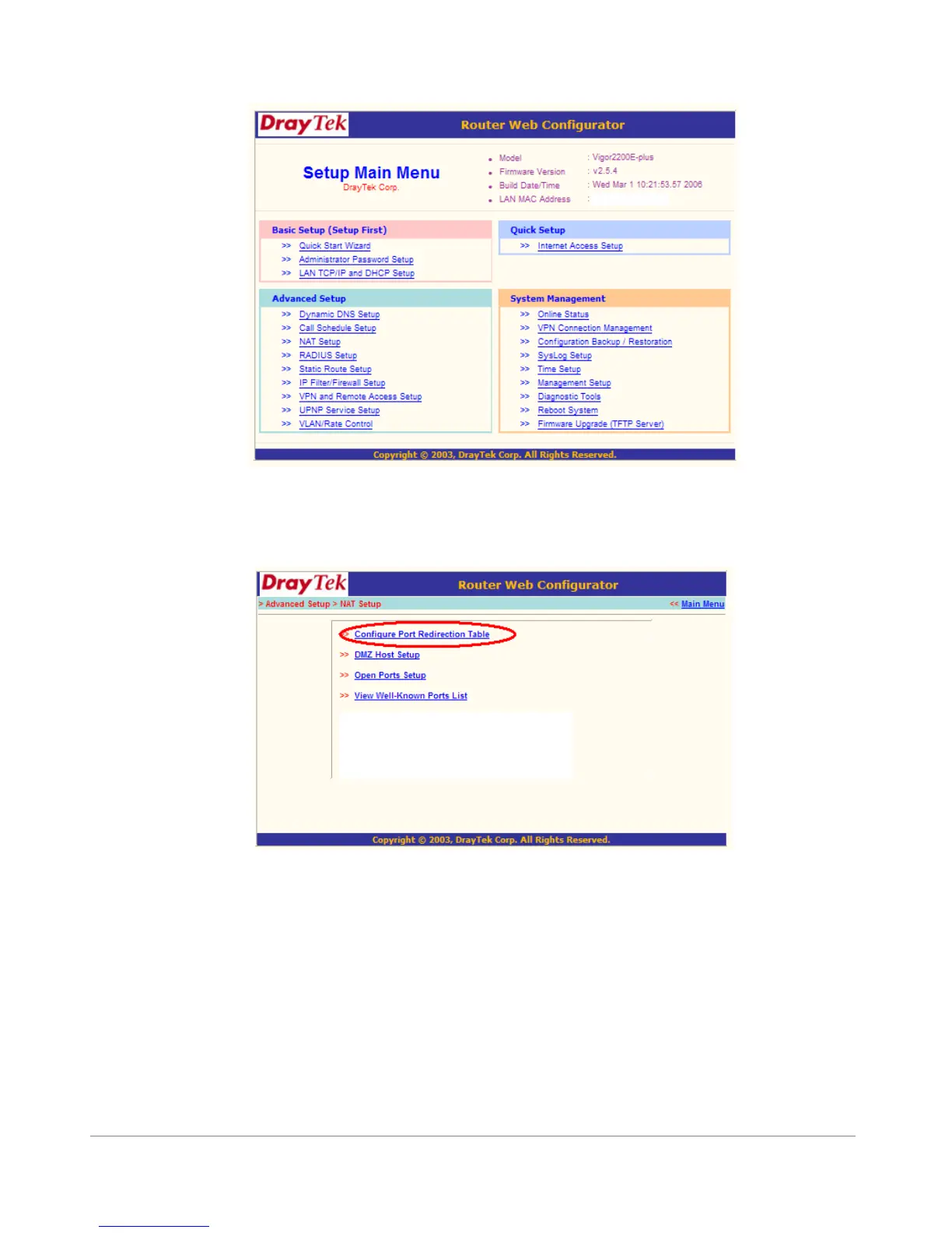 5. Please choose ‘Configure Port Redirection Table’