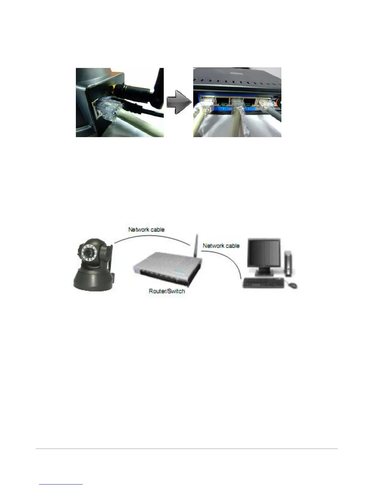 1. Brancher une extrémité du câble réseau à votre caméra, l’autre sur un port de votre routeur/switch/modem.