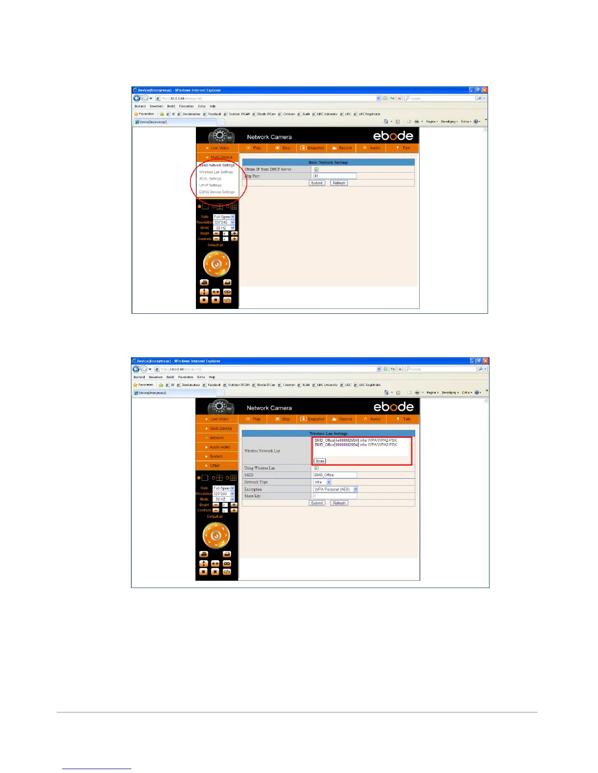 5. Cliquez sur “Network”>”Wireless Lan Settings”>”Scan”, merci d’appuyer 2 fois, après quoi vous pourrez trouver le