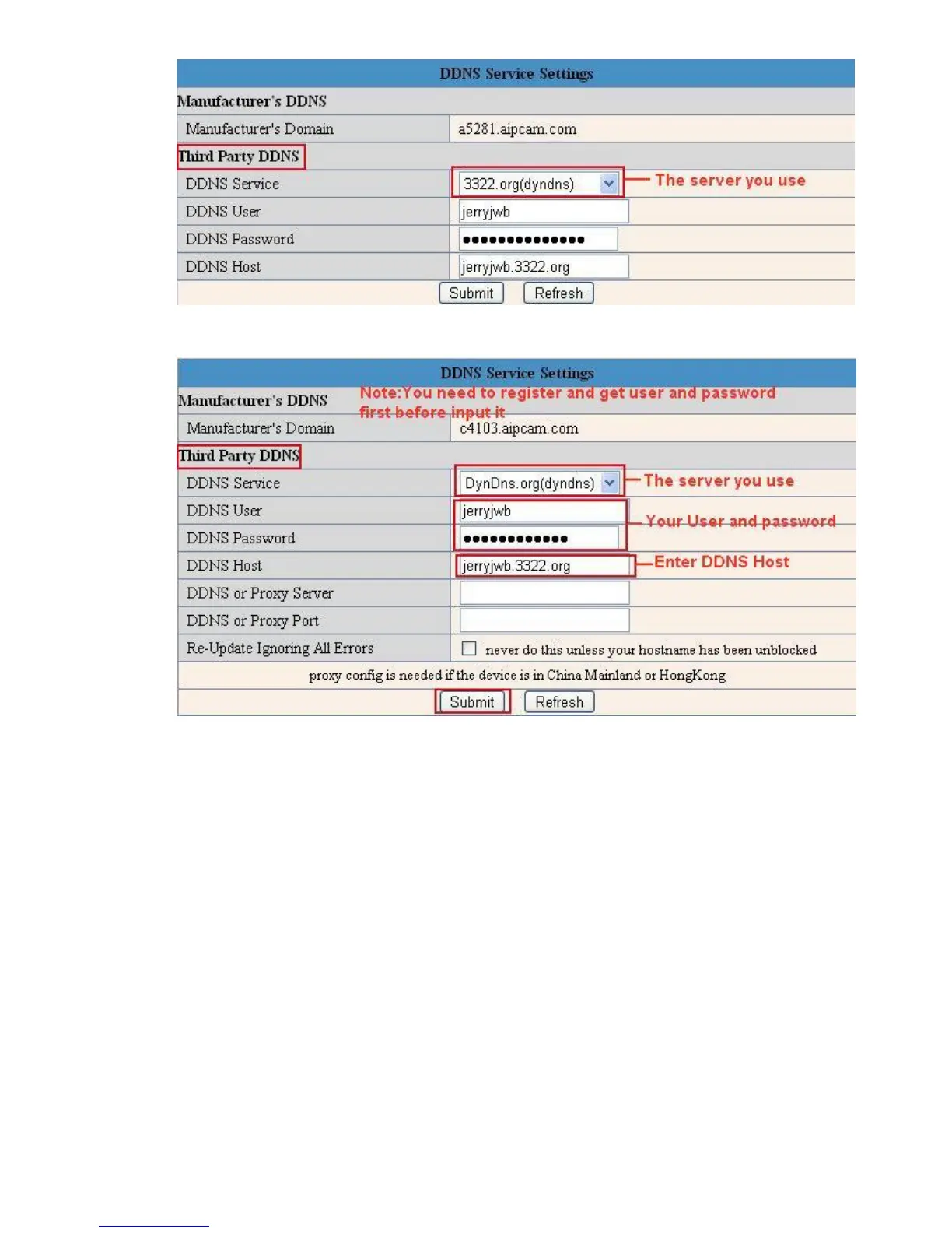 fonctionnera pas, si vous utilisez la "third party DDNS", "manufacturer’s" ne fonctionnera pas.