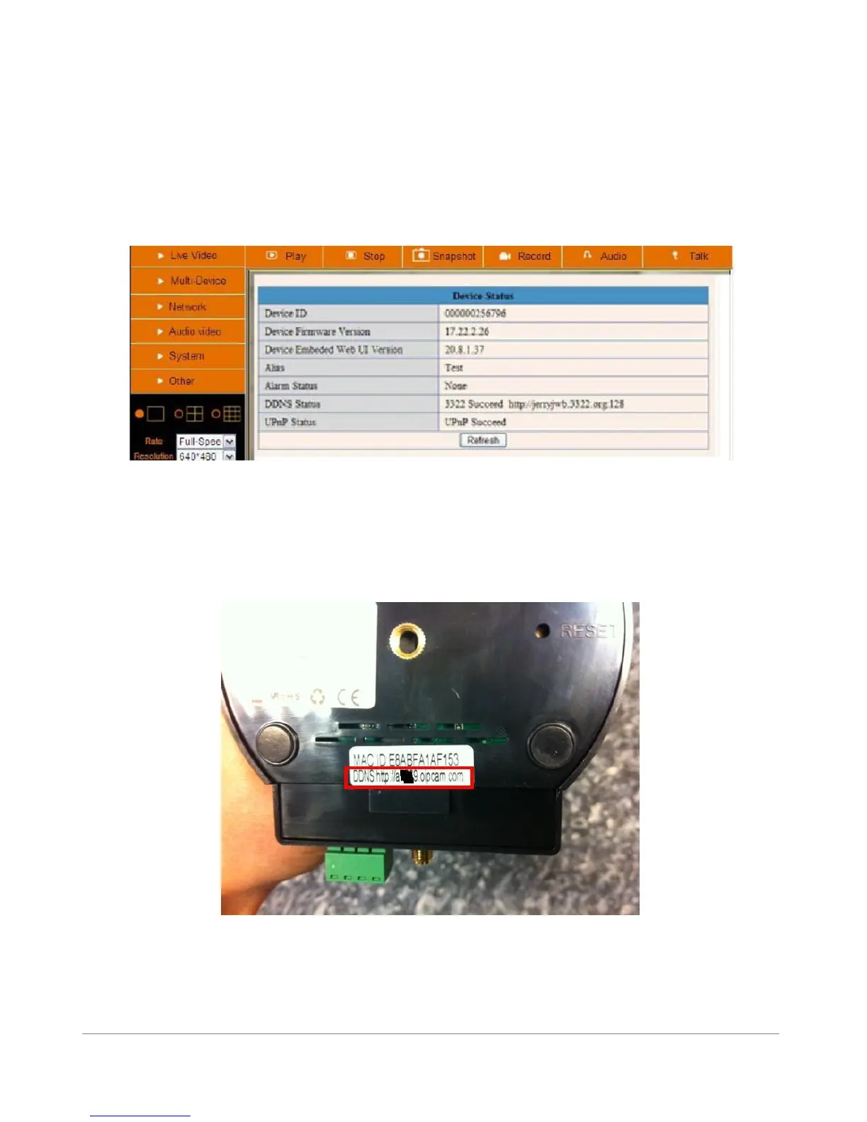 At the bottom of your camera will find a UNIQUE DDNS address to use with your camera: