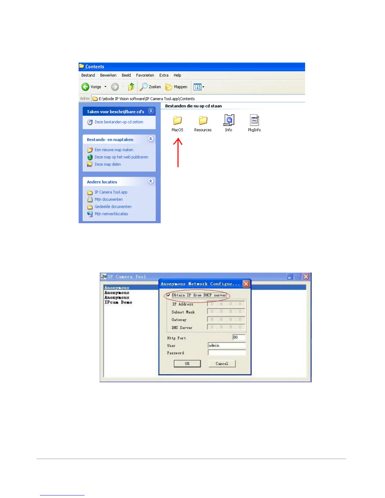 Browse to the Mac folder x:\ebode IP Vision software\IP Camera Tool.app\Contents